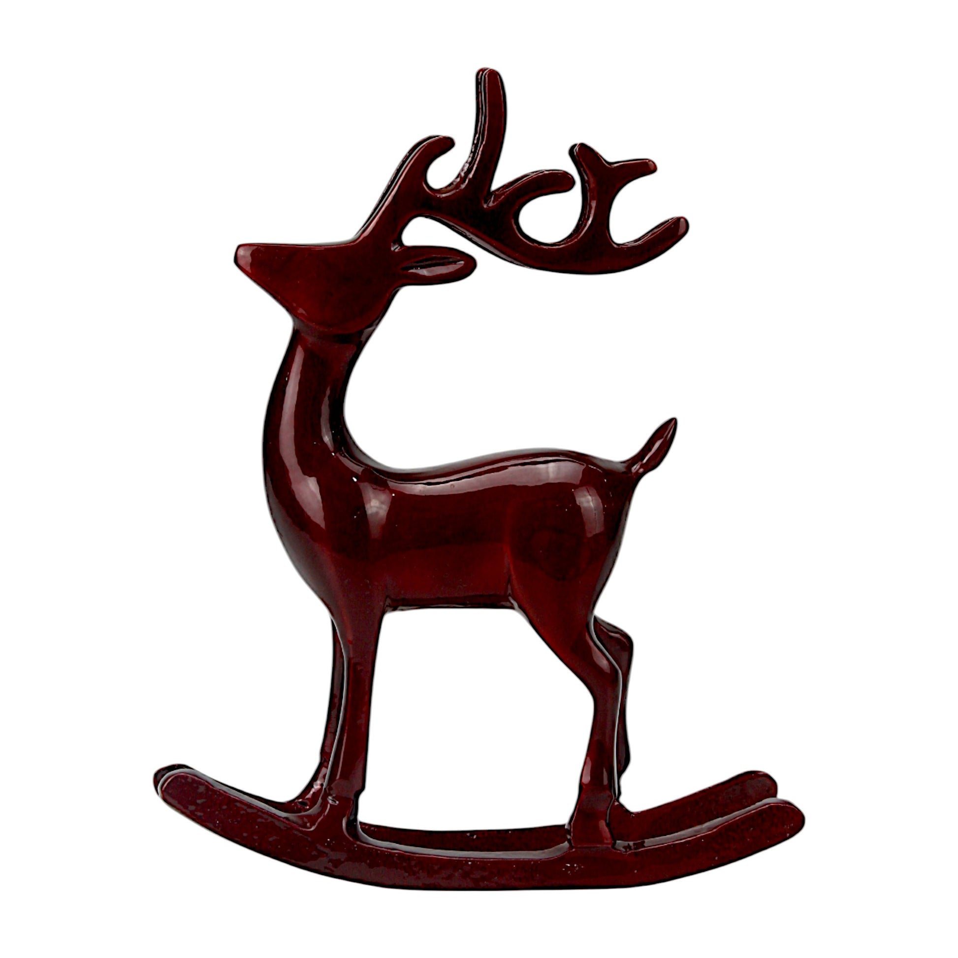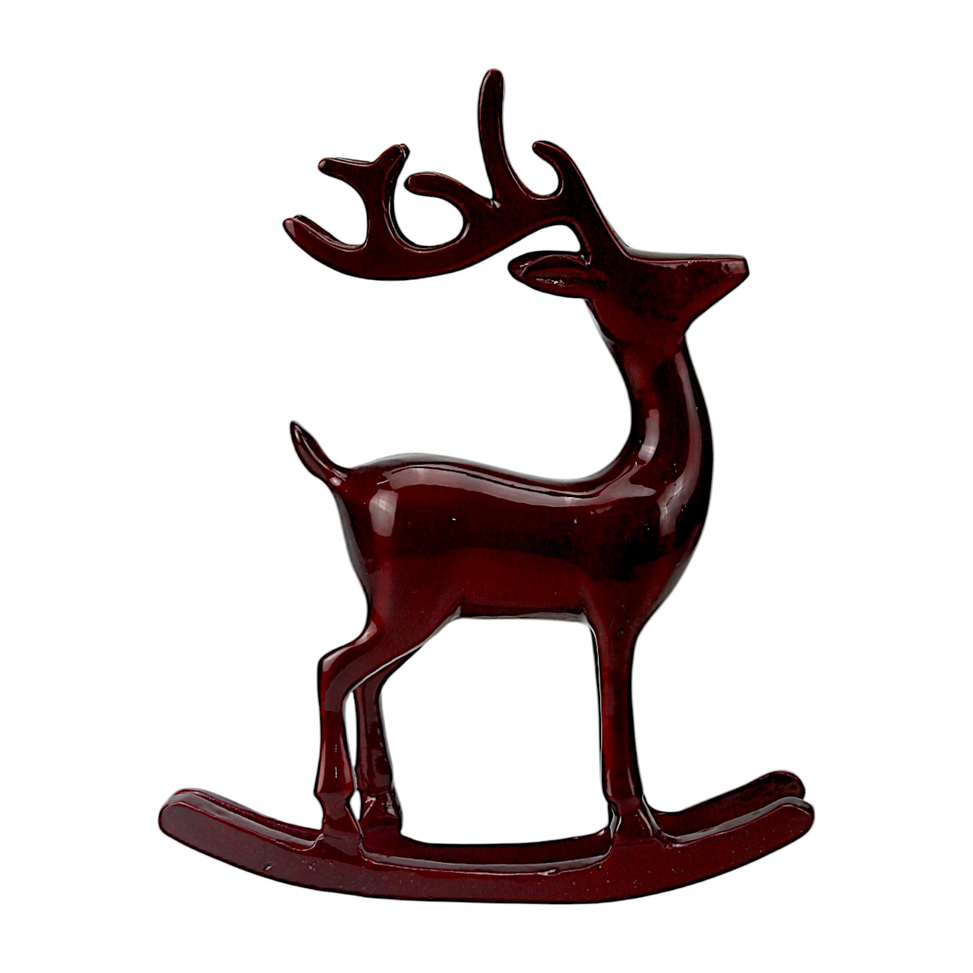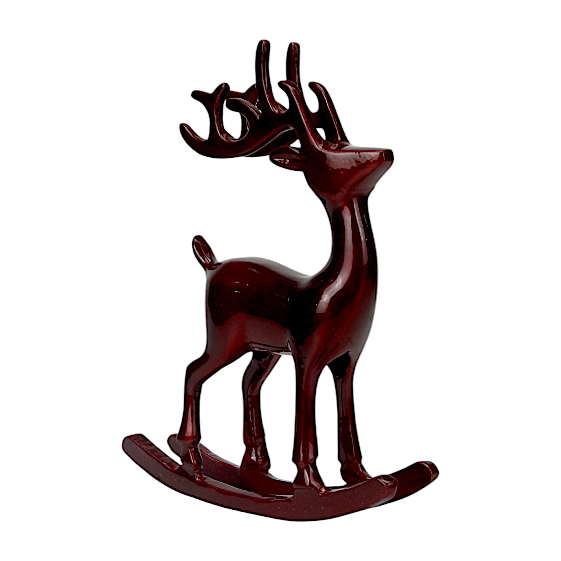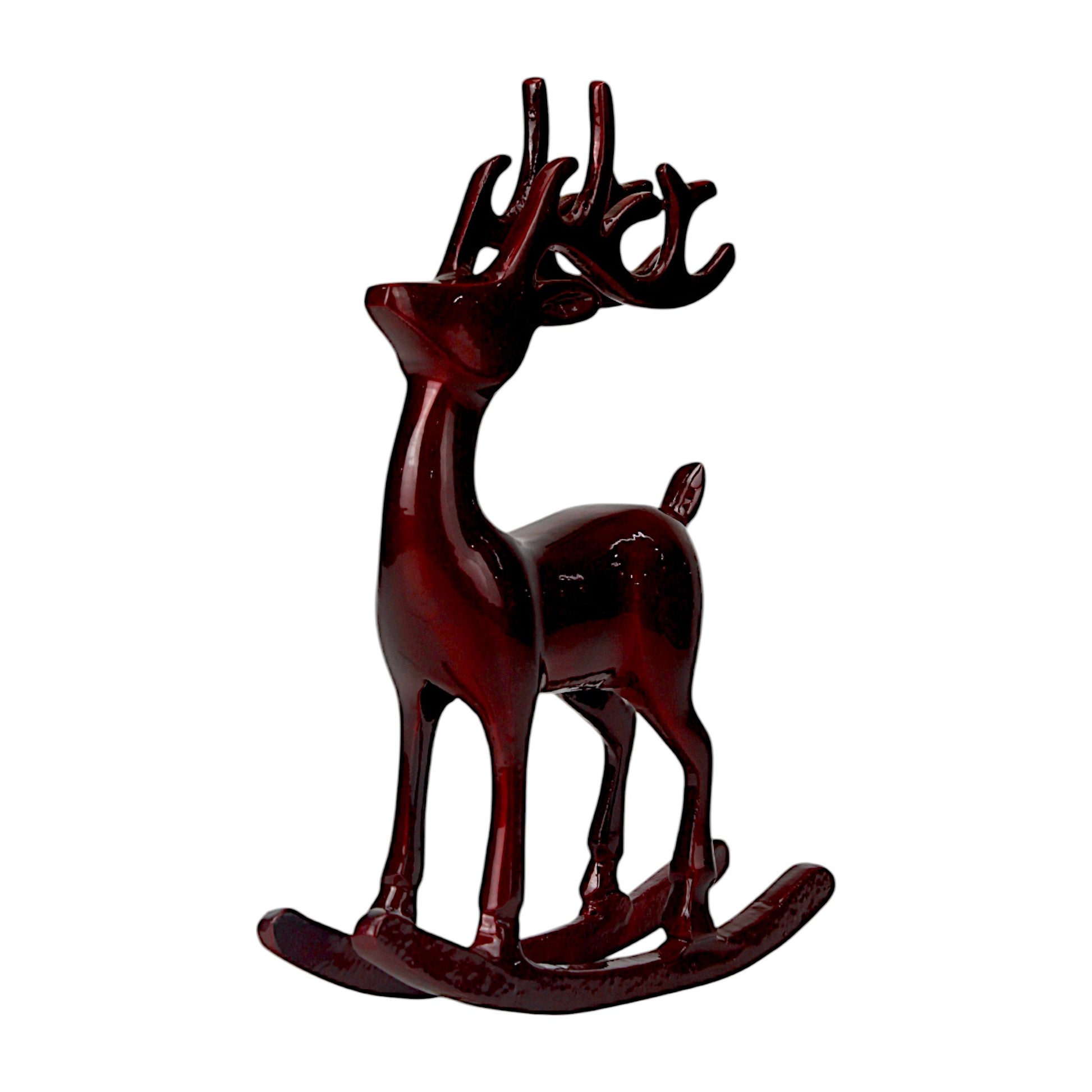 Dark Red Aluminum Handcrafted Reindeer on Rocking Base – Elegant Christmas Decor | Hind Decor