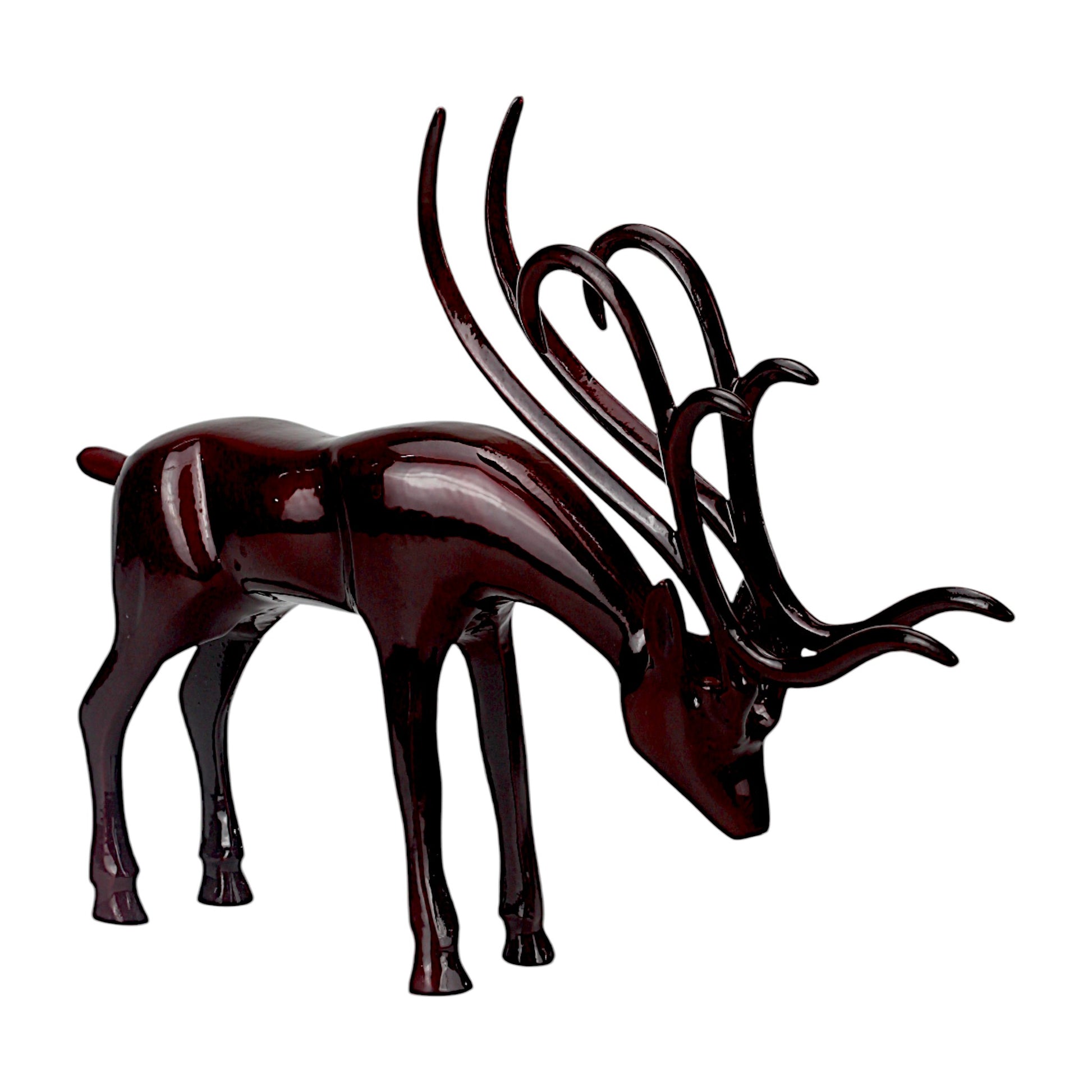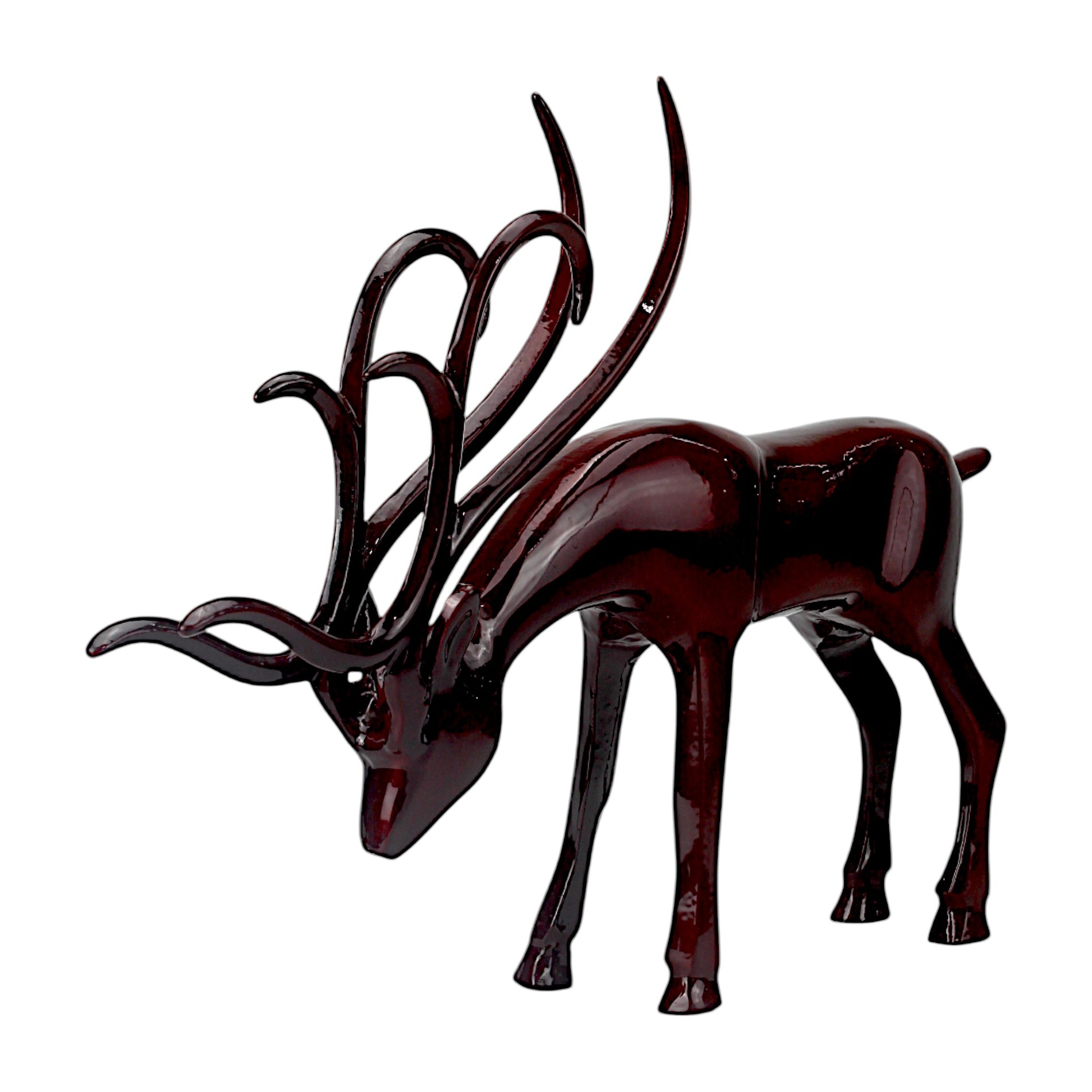 Dark Red Aluminum Long Horn Reindeer – Elegant Christmas Decor | Hind Decor