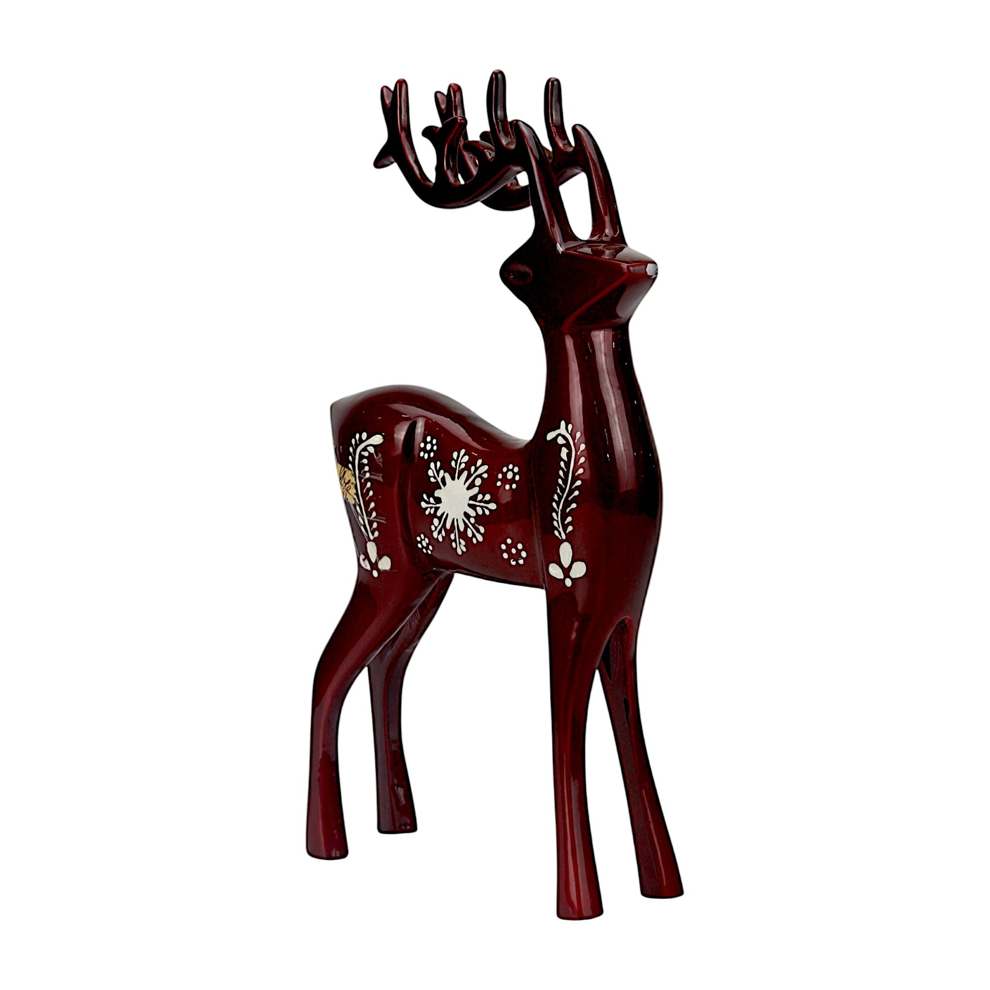 Dark Red Aluminum Long Horn Reindeer – Elegant Christmas Decor | Hind Decor