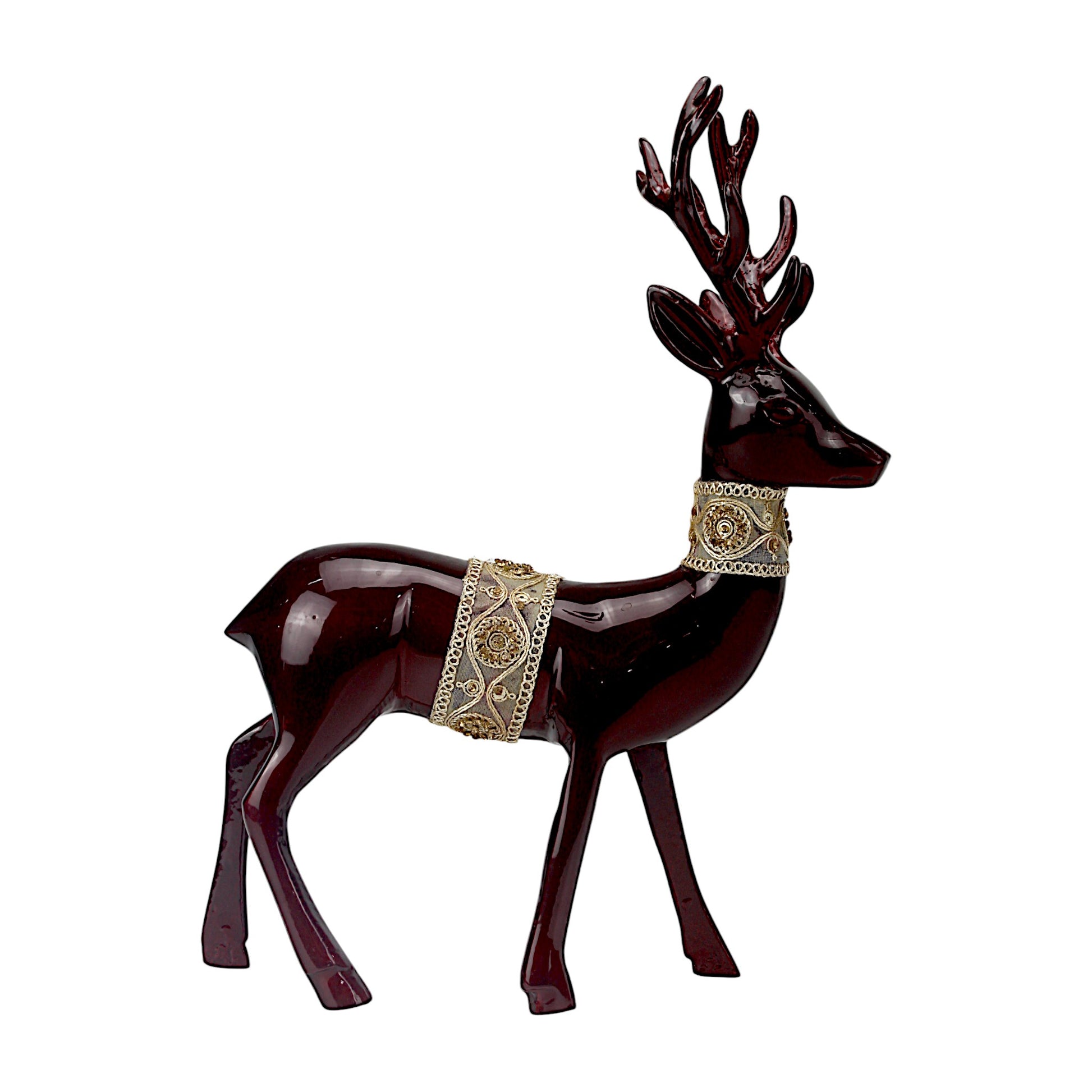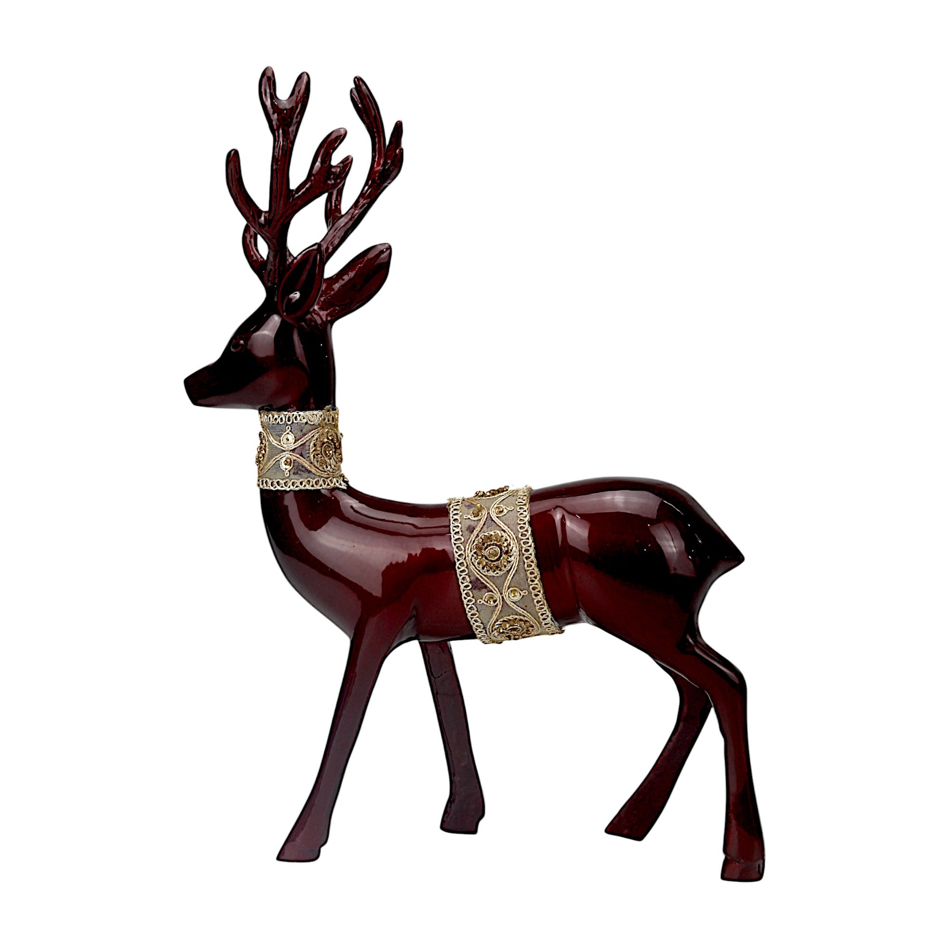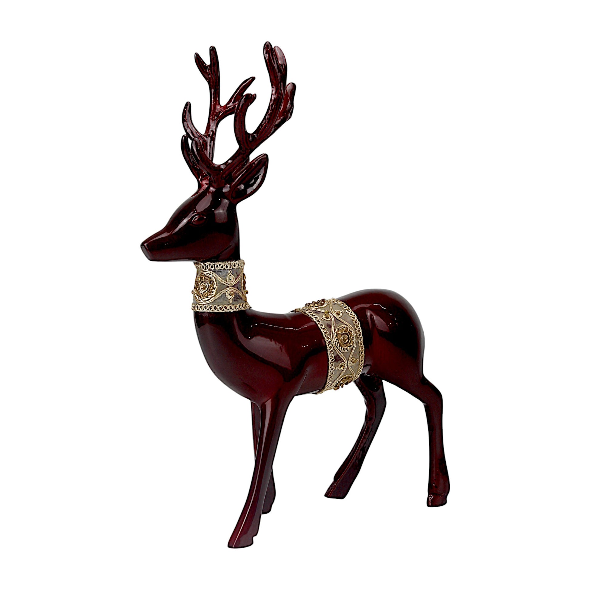 Dark Red Aluminum Minimalistic Reindeer with Royal Mosaic Finish on Back and Neck – Elegant Christmas Decor | Hind Decor