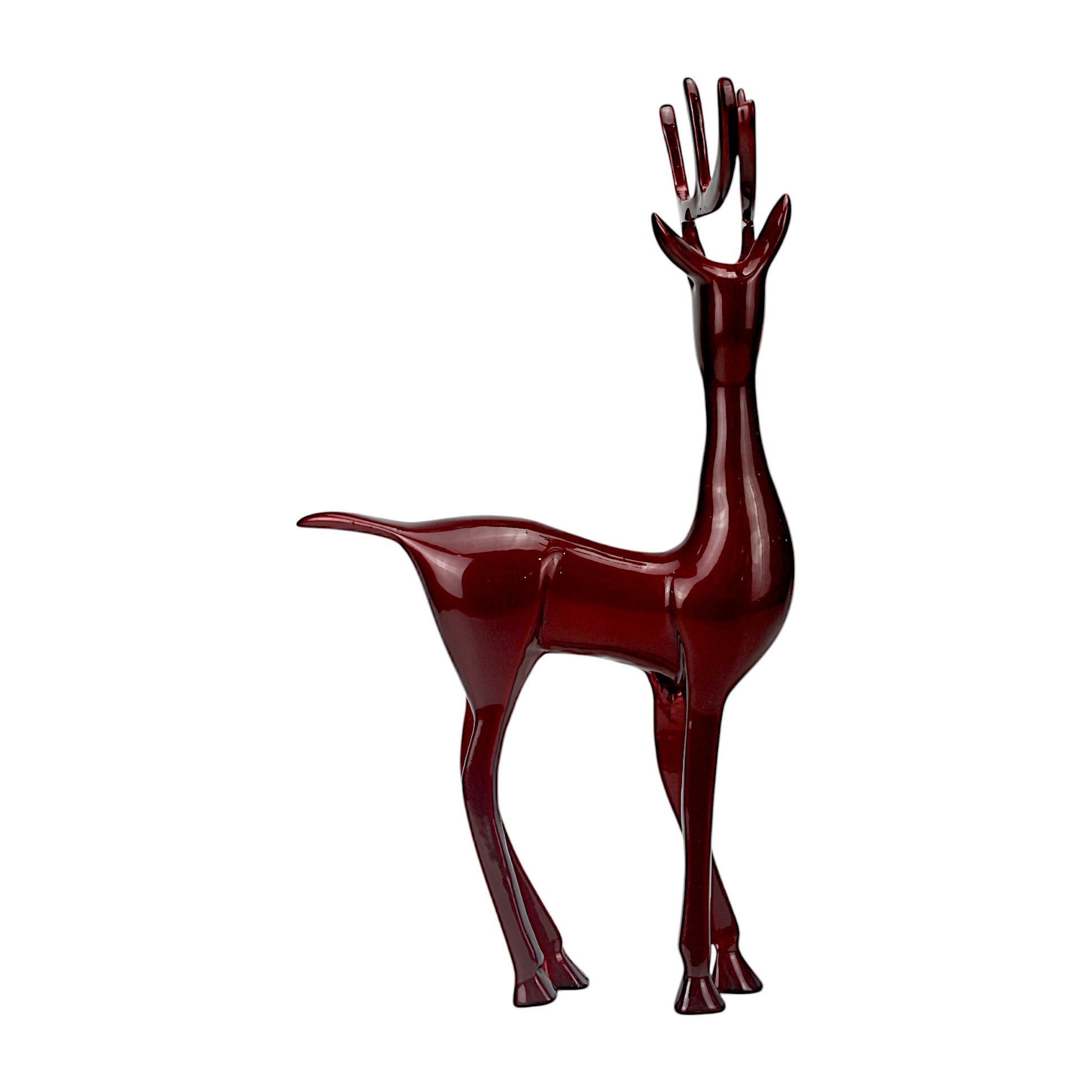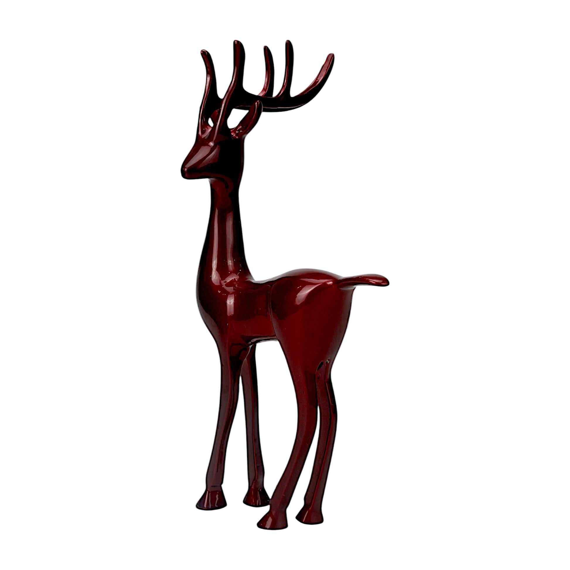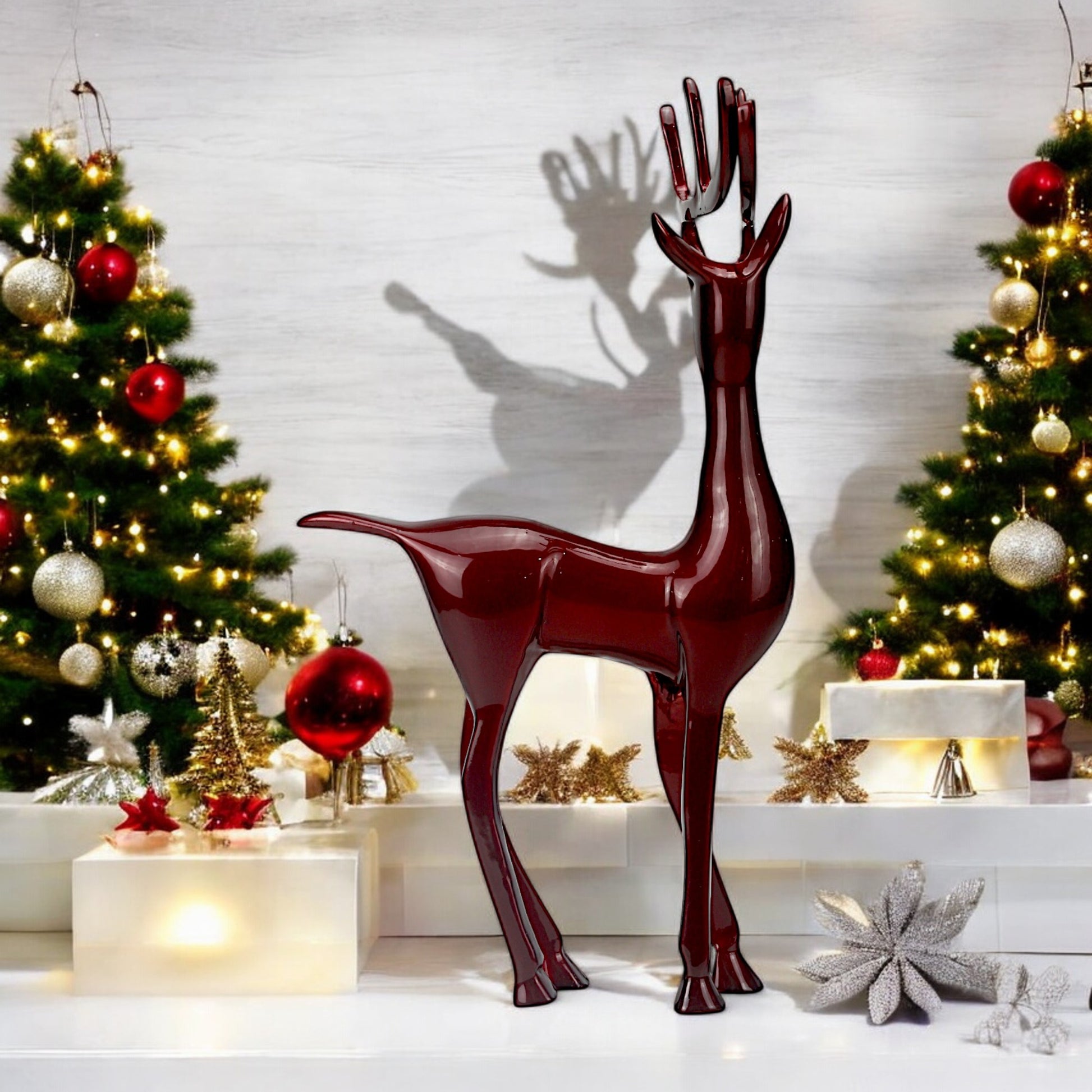 Elevate your Christmas decor with the sleek and sophisticated Dark Red Aluminum Handcrafted Minimalistic Reindeer on Base from Hind Decor. This stunning piece features a minimalist reindeer design, handcrafted from premium aluminum with a rich dark red finish. Its clean lines and elegant base make it a perfect addition to modern holiday settings.