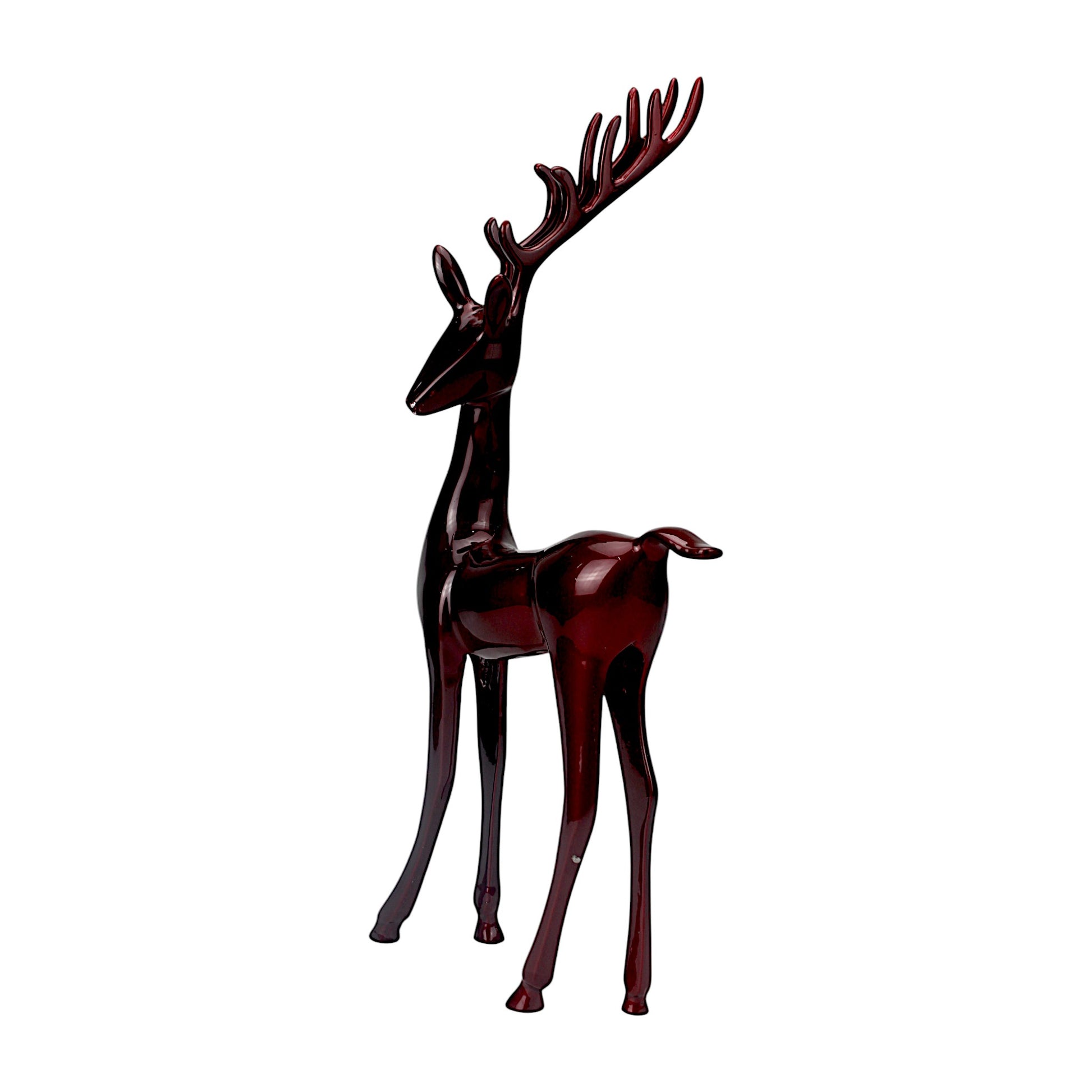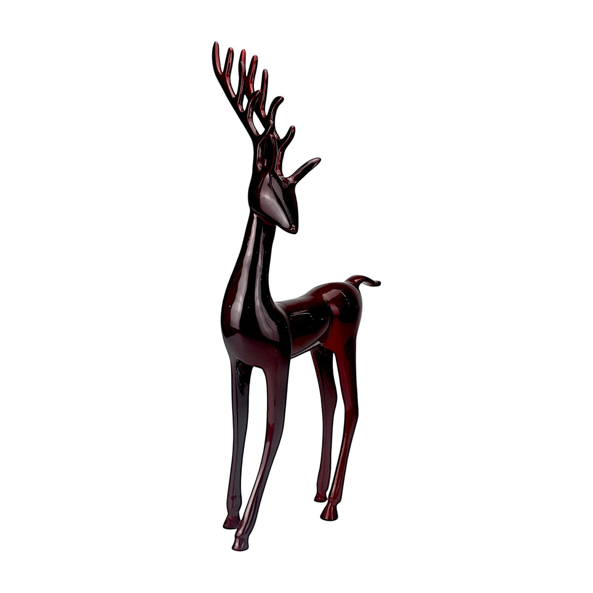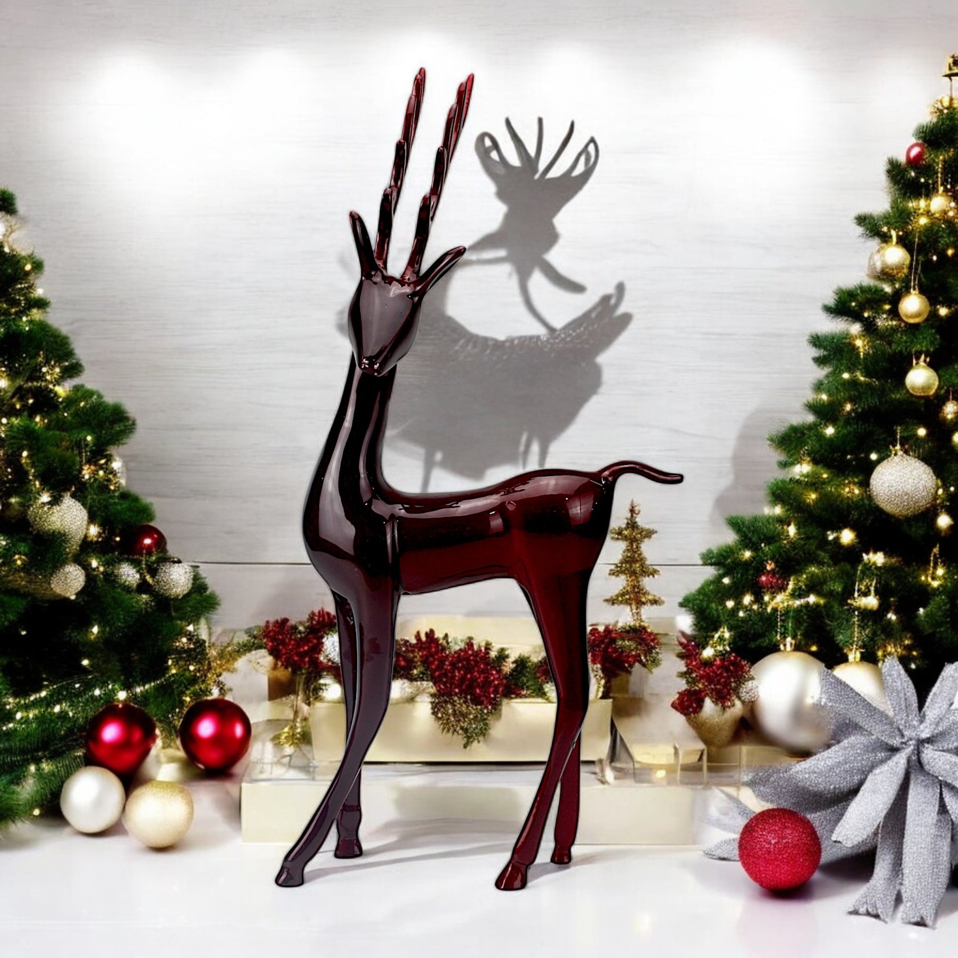 Elevate your Christmas decor with the sleek and sophisticated Dark Red Aluminum Handcrafted Minimalistic Reindeer on Base from Hind Decor. This stunning piece features a minimalist reindeer design, handcrafted from premium aluminum with a rich dark red finish. Its clean lines and elegant base make it a perfect addition to modern holiday settings.
