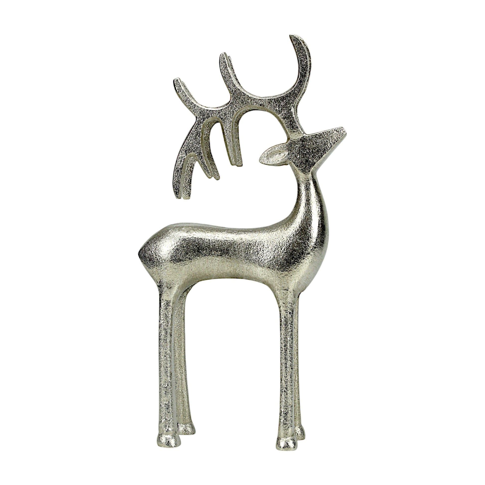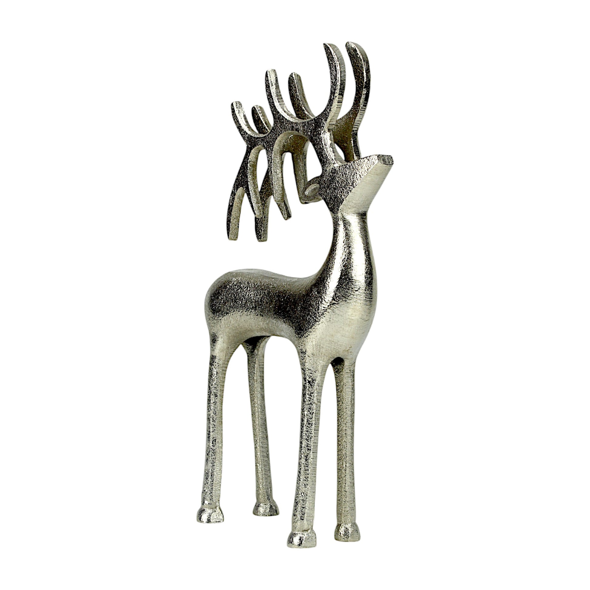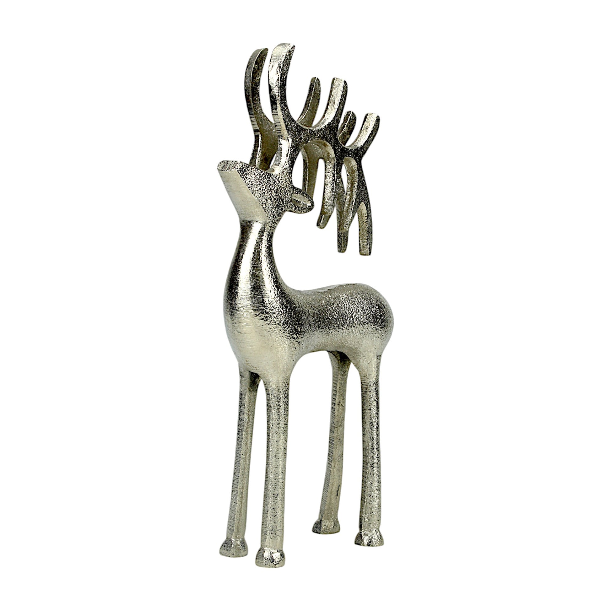 Silver Aluminum Handcrafted Christmas Standing Deer – Elegant Holiday Decor | Hind Decor