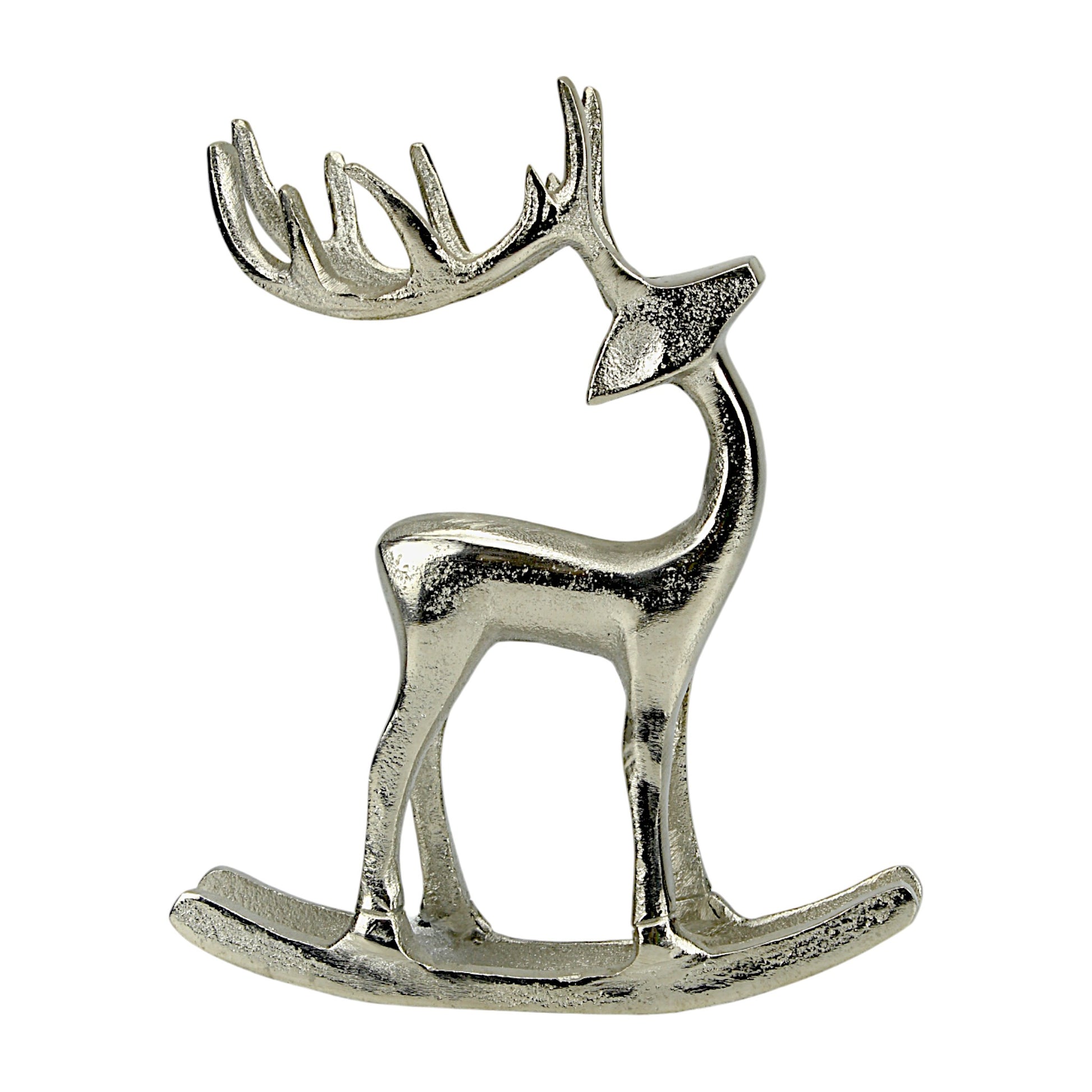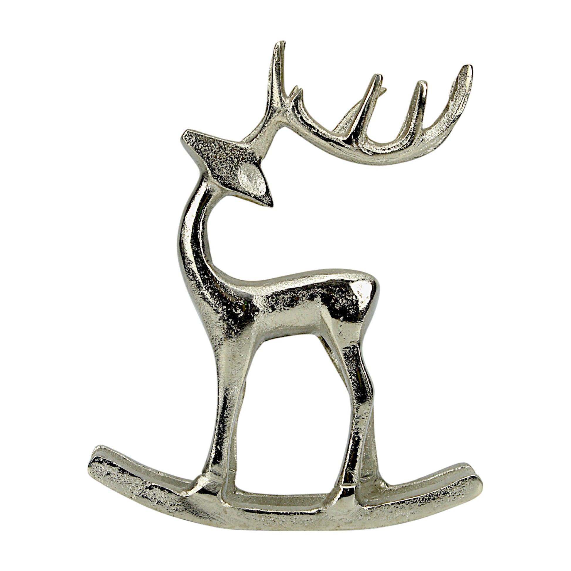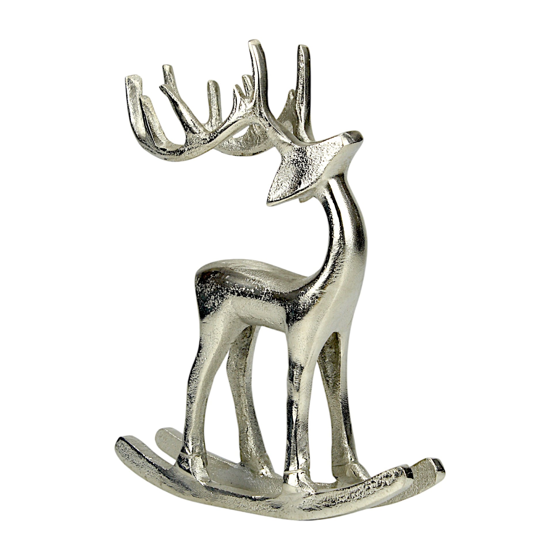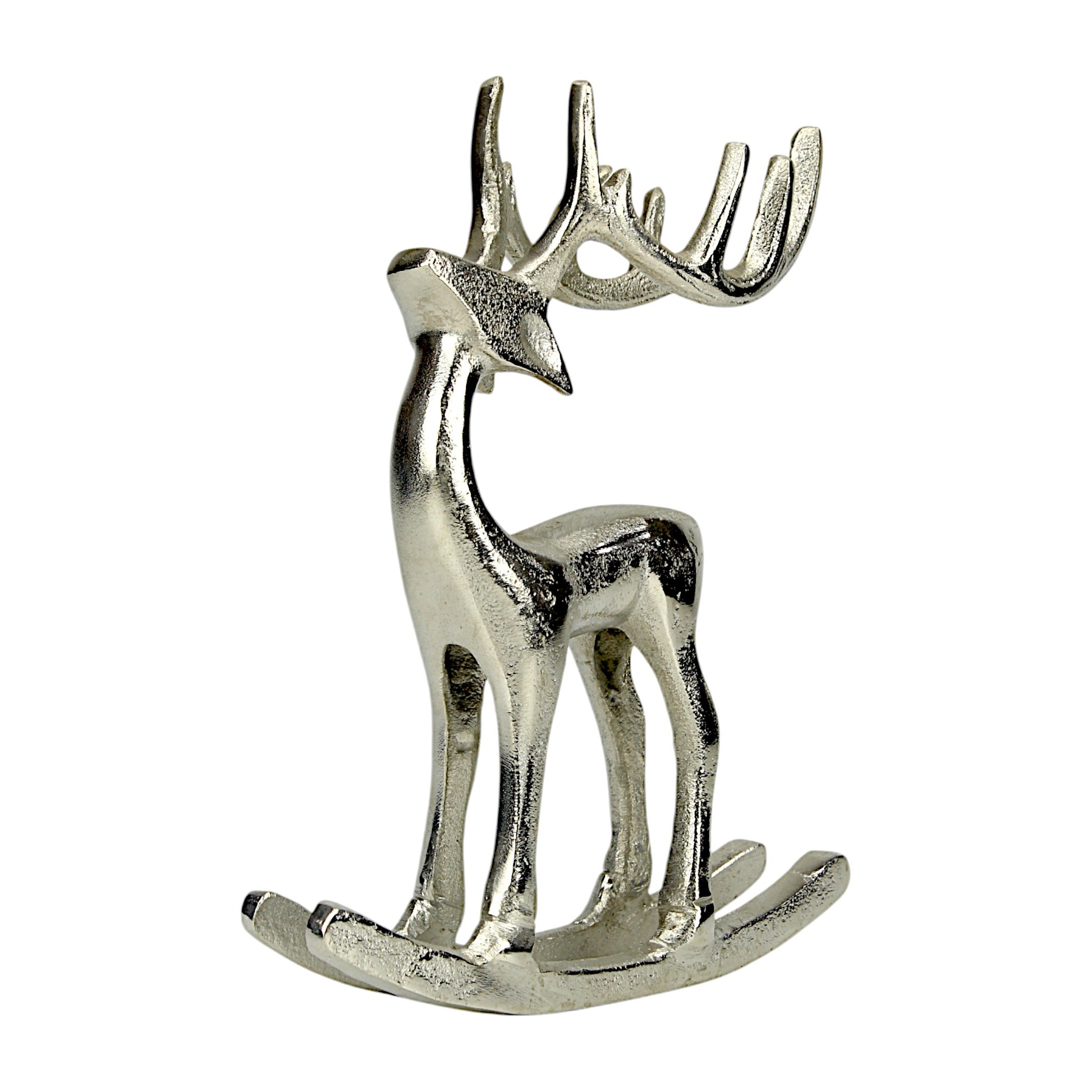 Silver Aluminum Reindeer on Rocking Base – Elegant Christmas Decor | Hind Decor
