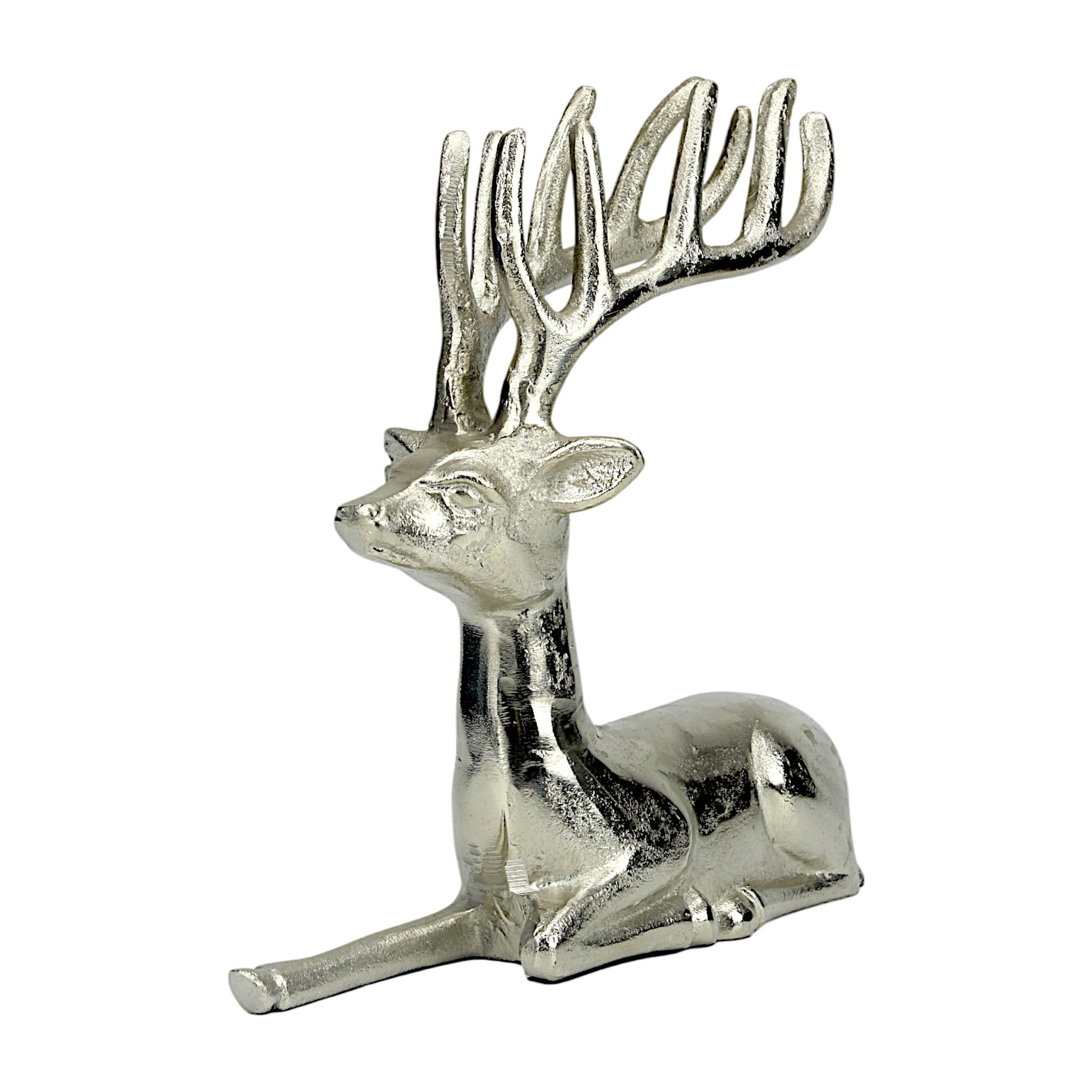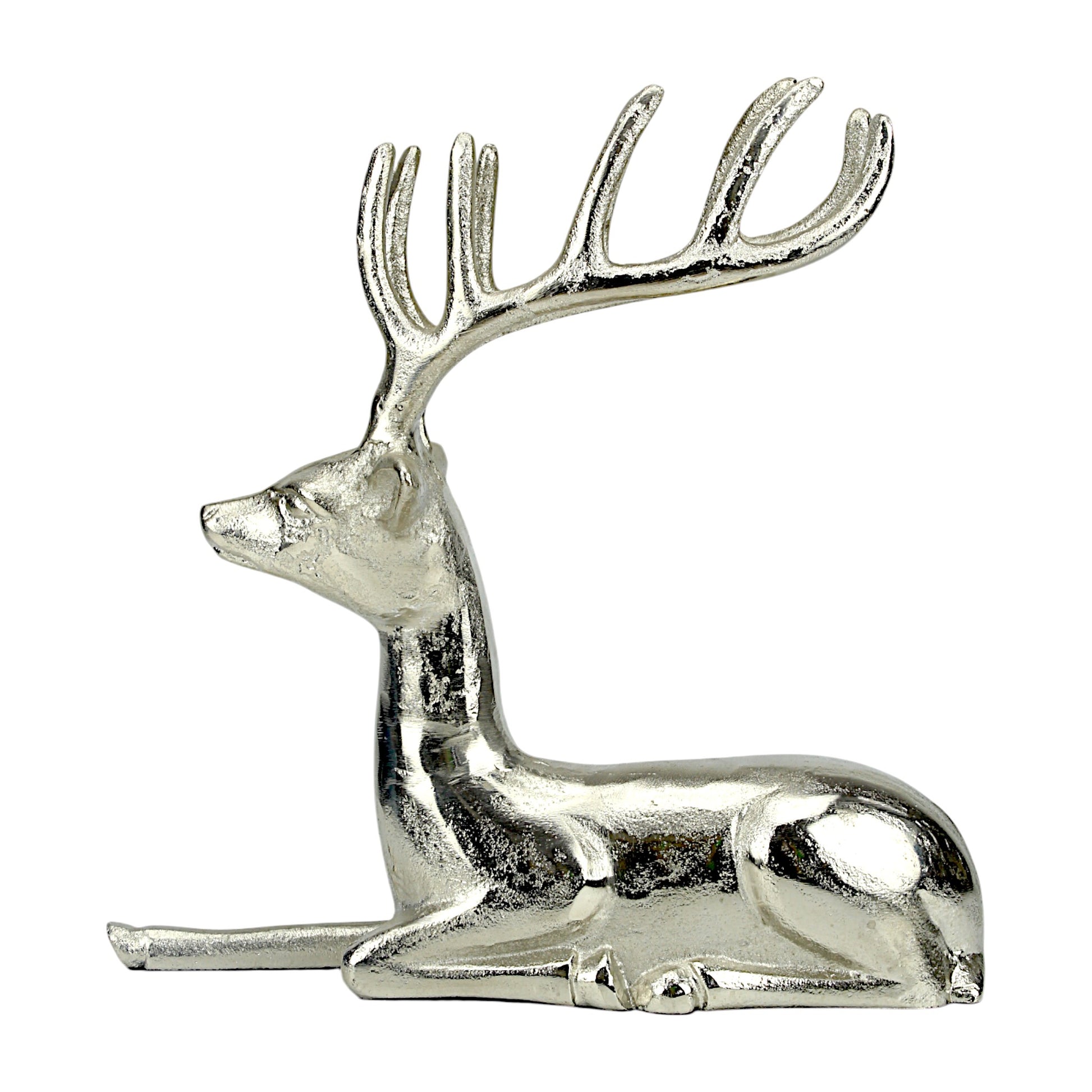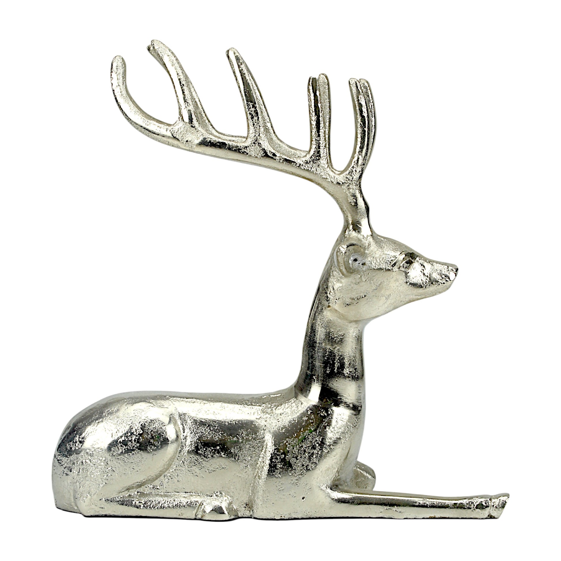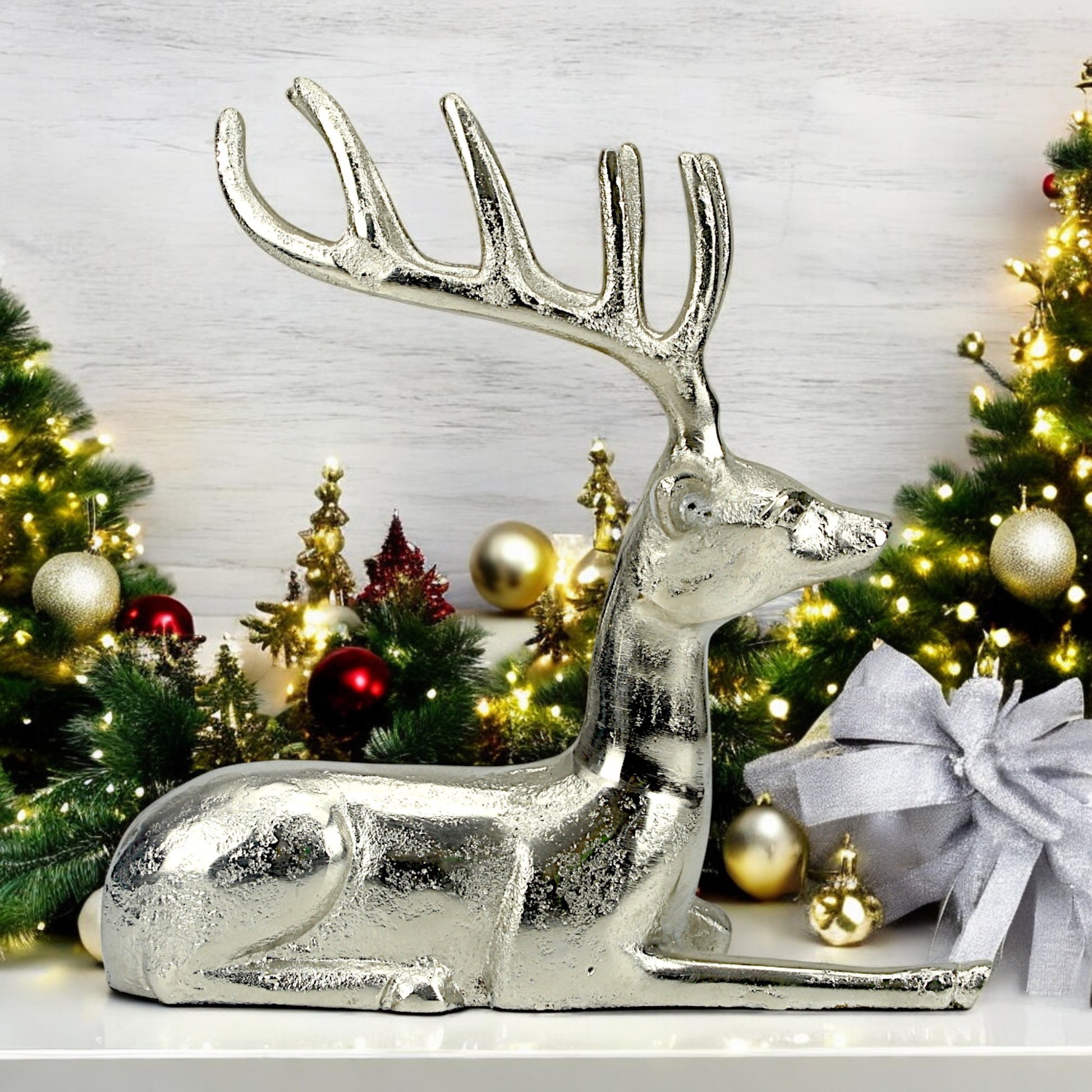 Silver Aluminum Sitting Reindeer – Elegant Christmas & Holiday Decor | Hind Decor