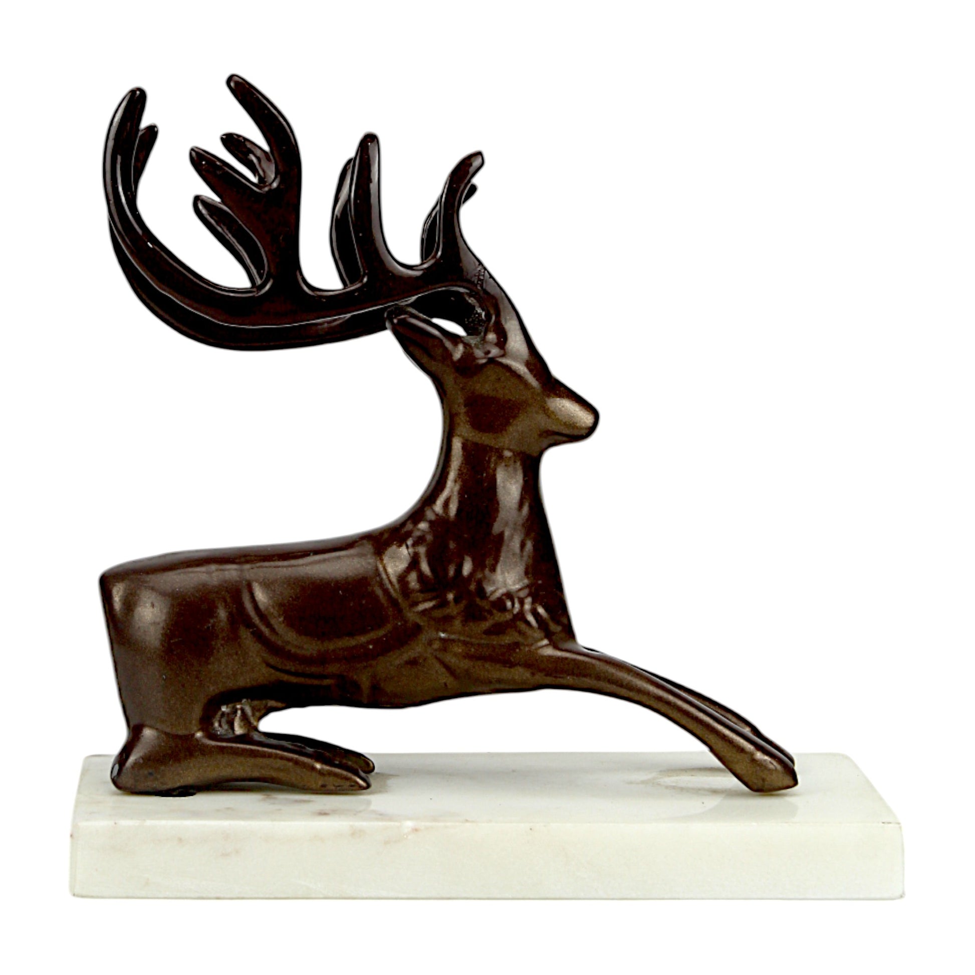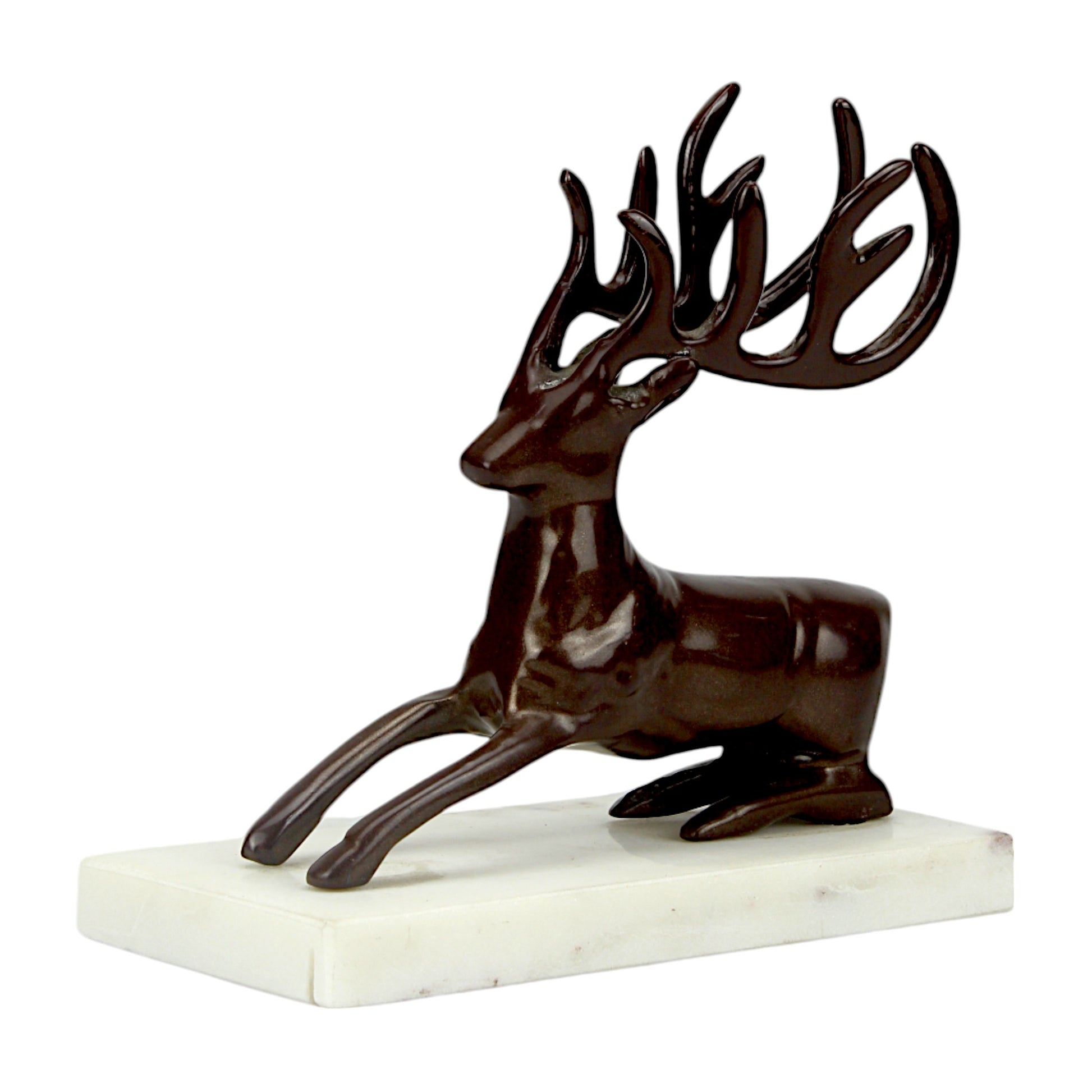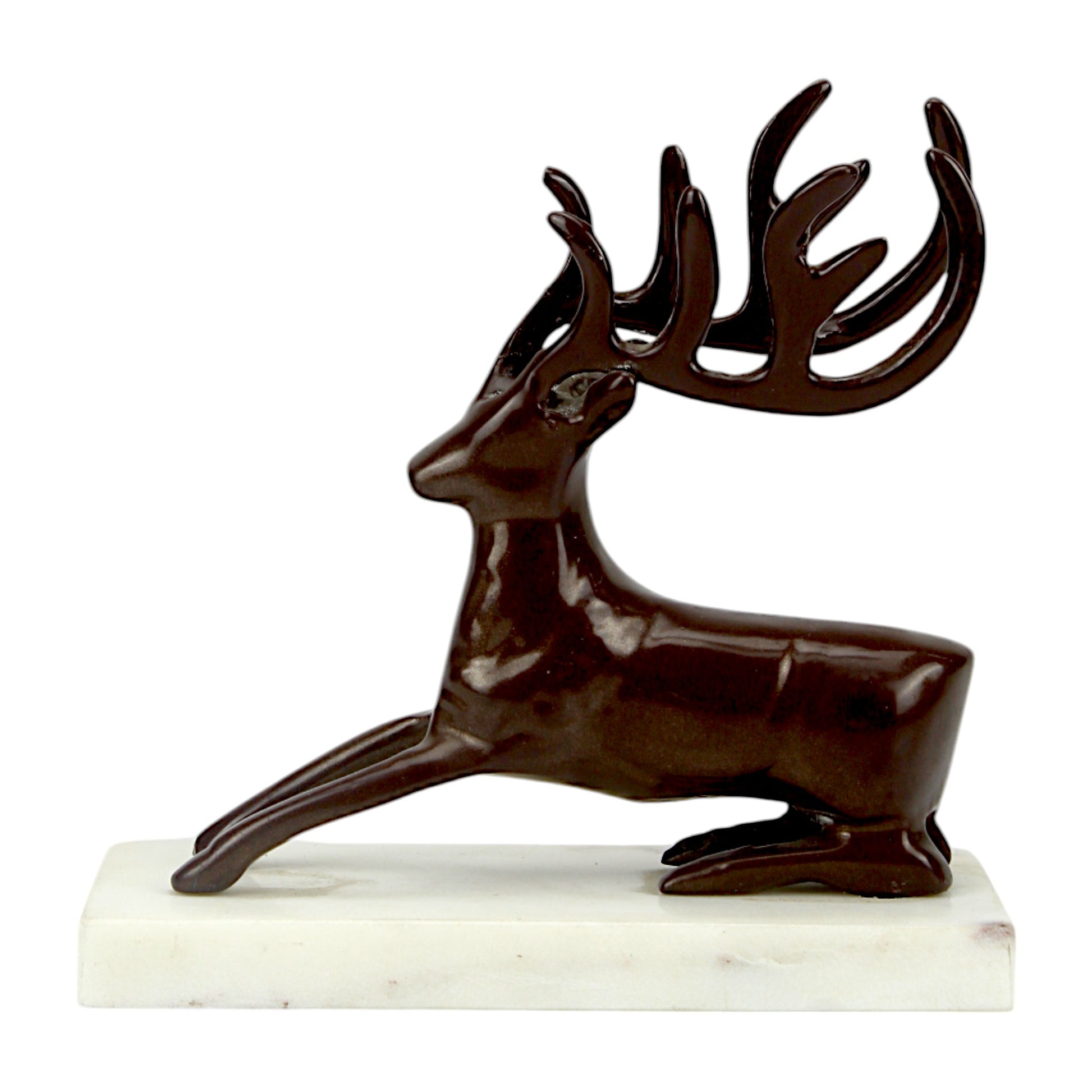 Red Aluminum Sitting Reindeer on Marble Base – Elegant Christmas Decor | Hind Decor