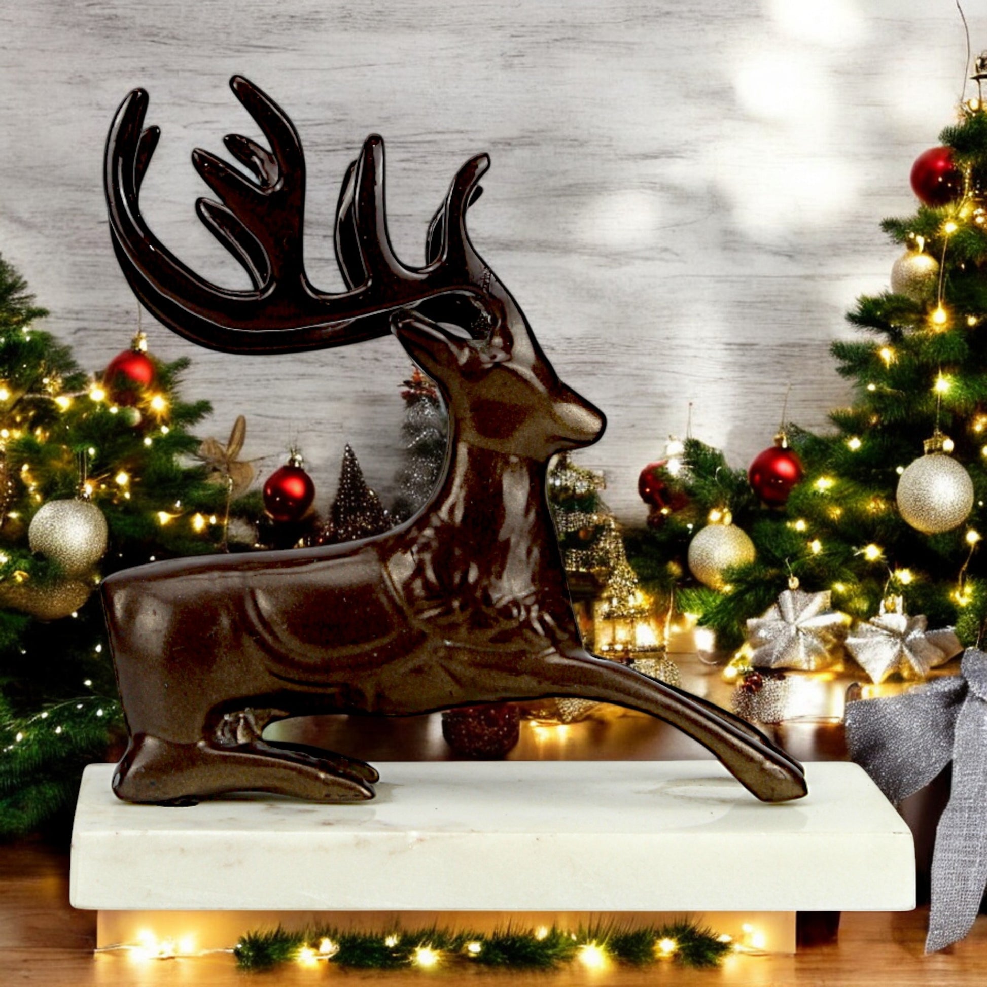 Add a bold and festive touch to your Christmas decor with the Red Aluminum Sitting Reindeer on Marble Base from Hind Decor. This stunning handcrafted reindeer, made from high-quality red aluminum, sits gracefully atop a sleek marble base, combining modern design with traditional elegance. Perfect for creating a striking focal point in your holiday displays.
