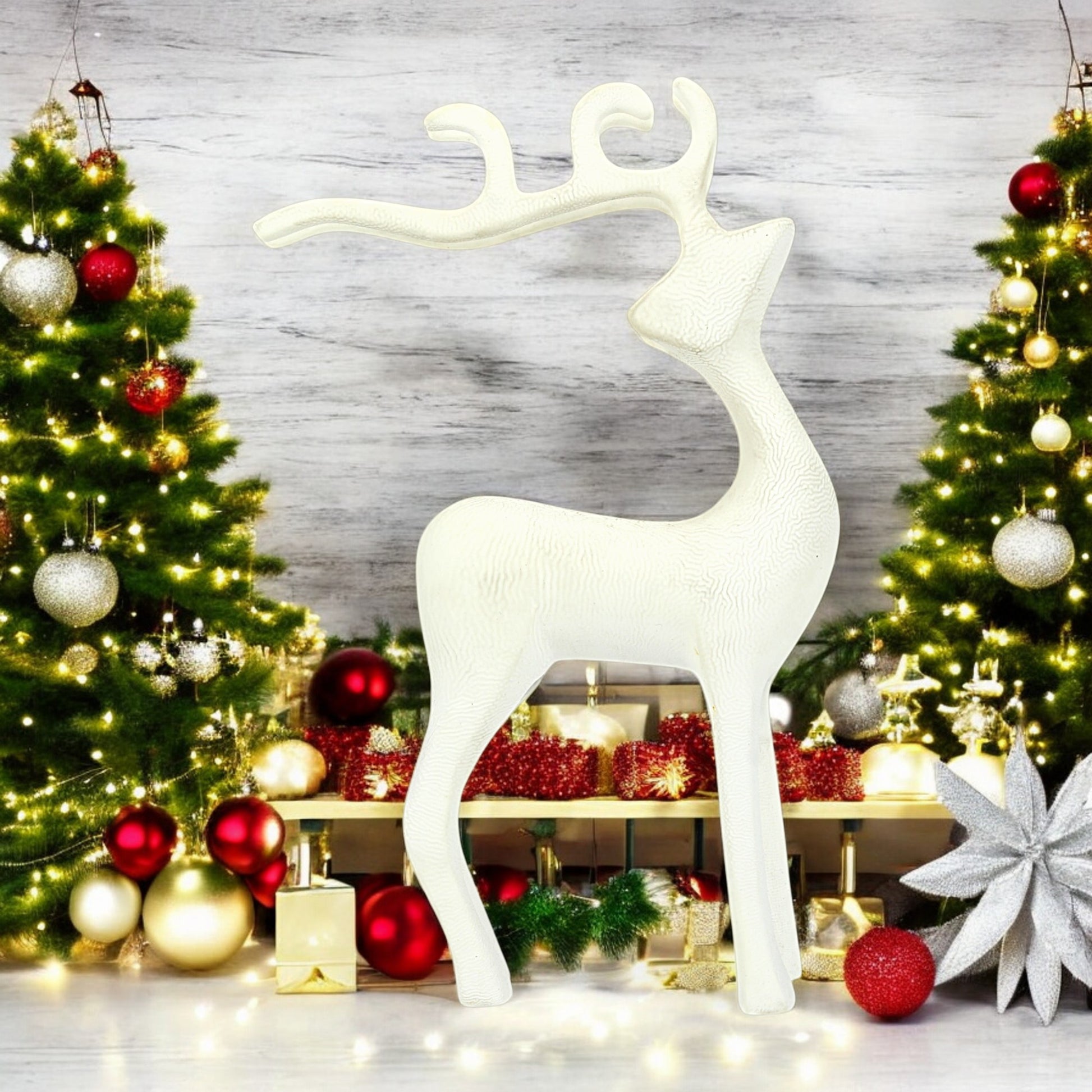 white handcrafted Aluminium White Handcrafted Aluminum Reindeer – Elegant Christmas Decor | Hind Decor