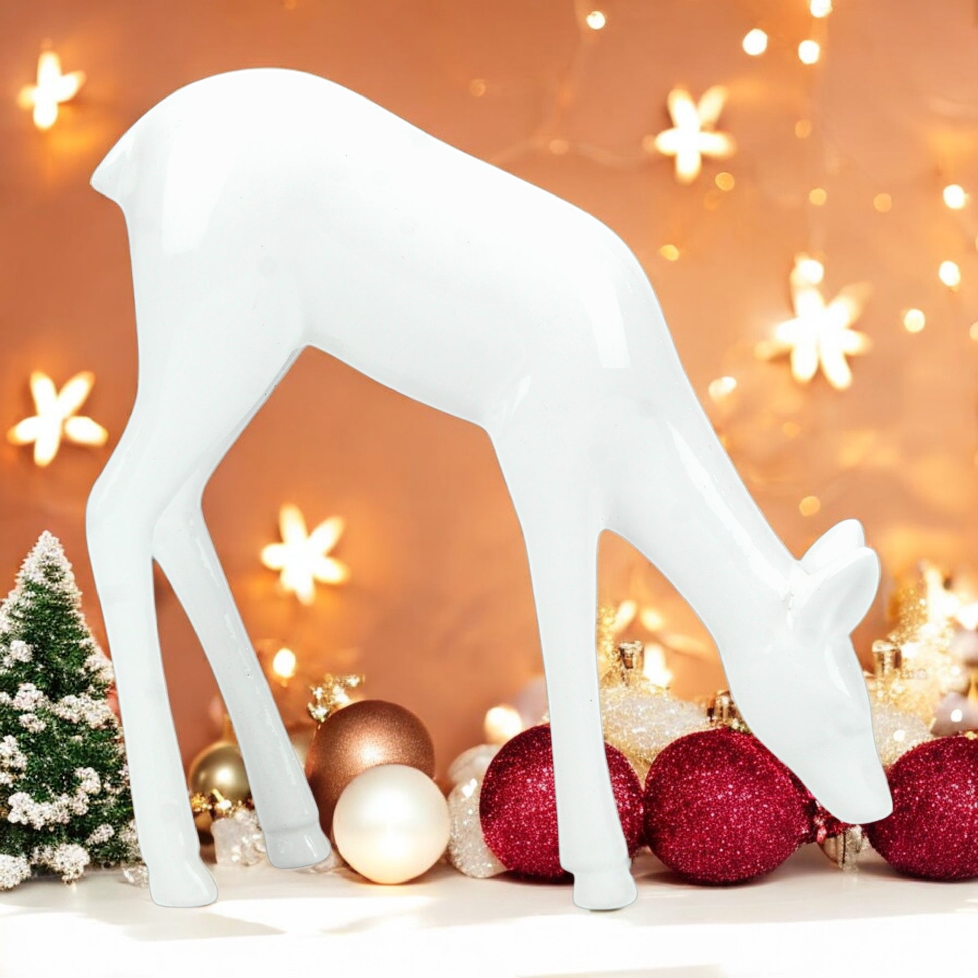 White Handcrafted Aluminum Deer – Elegant Christmas & Holiday Decor | Hind Decor