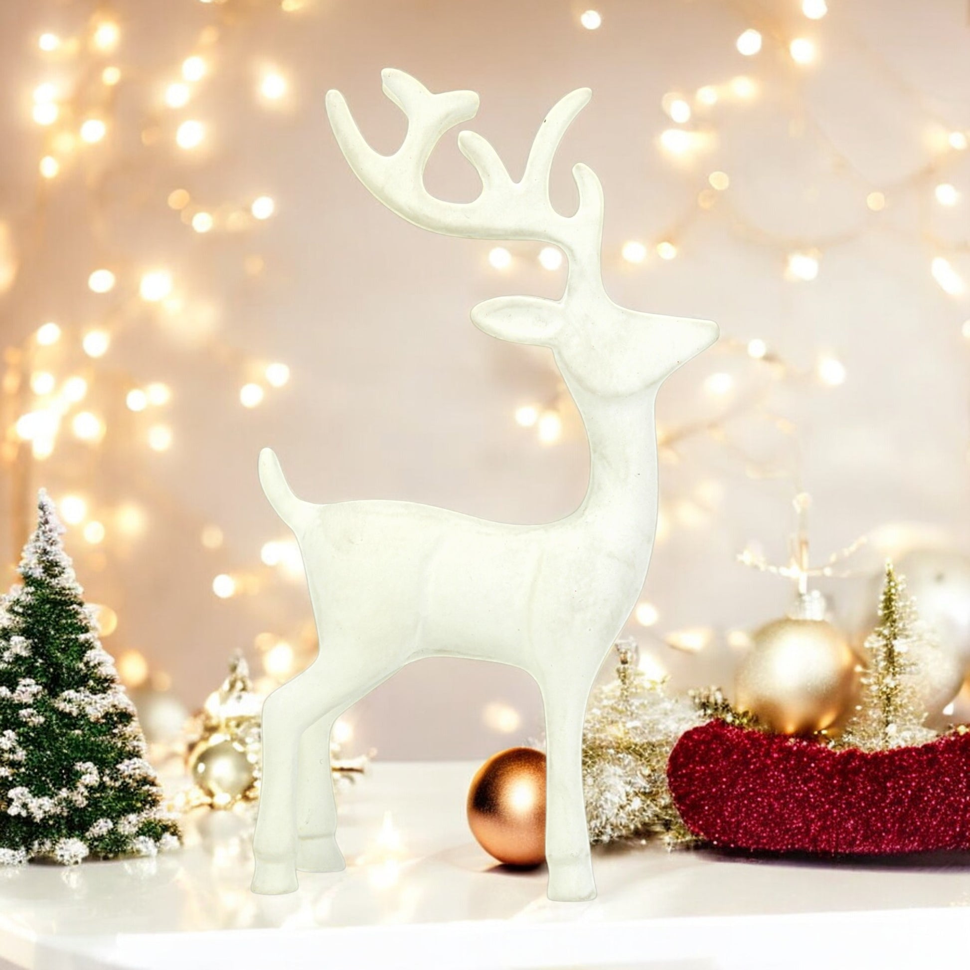 Bring a serene and sophisticated touch to your Christmas decor with the White Handcrafted Aluminum Reindeer from Hind Decor. This beautifully designed reindeer is crafted from high-quality aluminum with a sleek white finish, offering a minimalist and elegant aesthetic that complements any holiday setting. Its graceful design makes it a perfect addition to your winter decor.