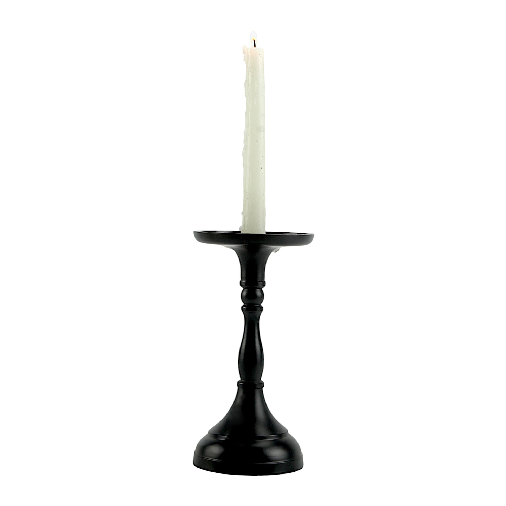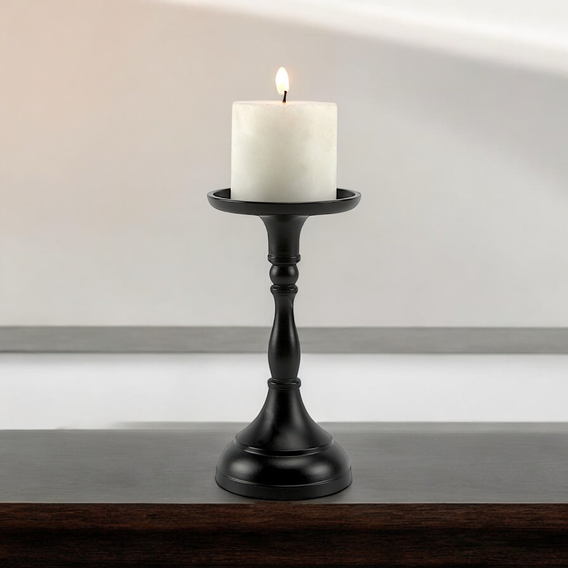 Elegant Black Aluminum Medium Pillar Candle Holder | Timeless Home Accent