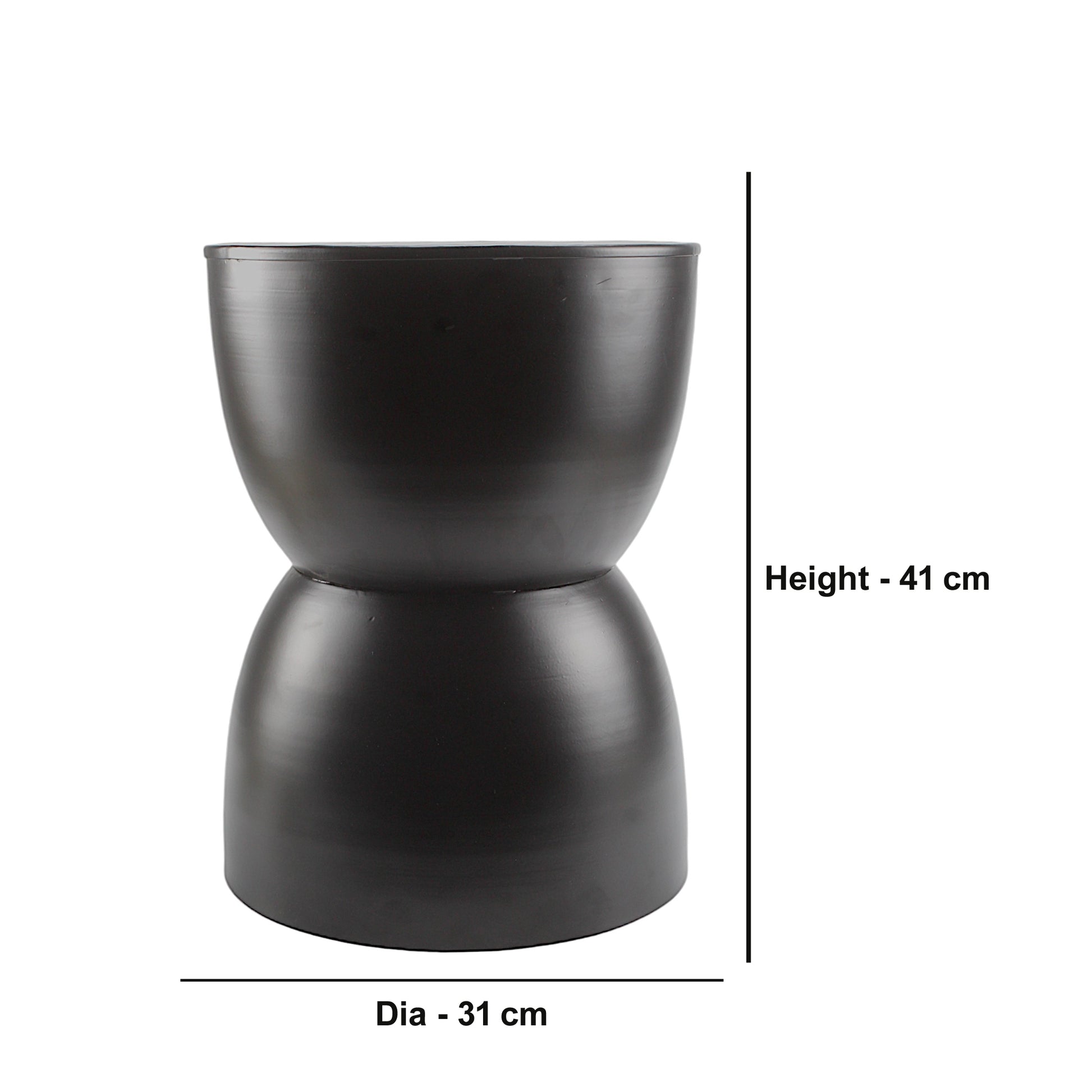Add a touch of modern elegance to your space with this black hourglass-shaped decorative stool. Featuring a unique, double-concave silhouette, this stool is the perfect blend of art and functionality. Its sleek black finish complements various decor styles, from contemporary to minimalist.