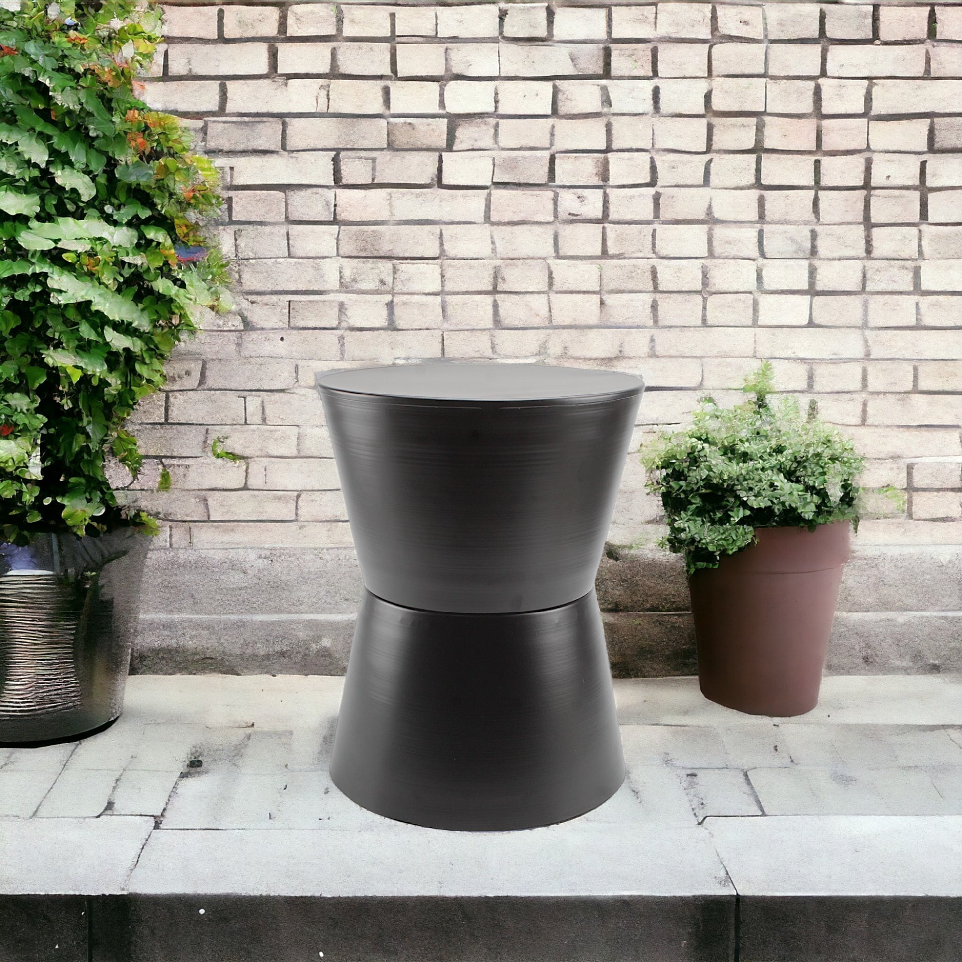 Add a touch of modern elegance to your space with this black hourglass-shaped decorative stool. Featuring a unique, double-concave silhouette, this stool is the perfect blend of art and functionality. Its sleek black finish complements various decor styles, from contemporary to minimalist.