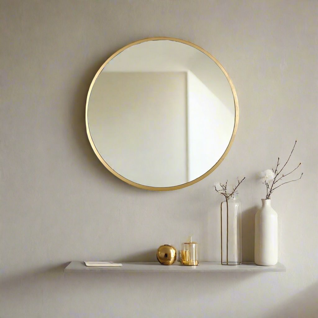 Enhance your interiors with the timeless elegance of our Round Mirror with Golden Metal Frame, designed to bring both style and sophistication to your home.