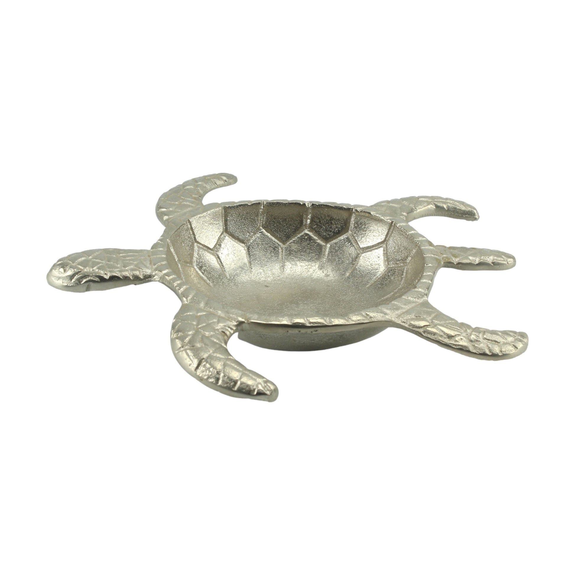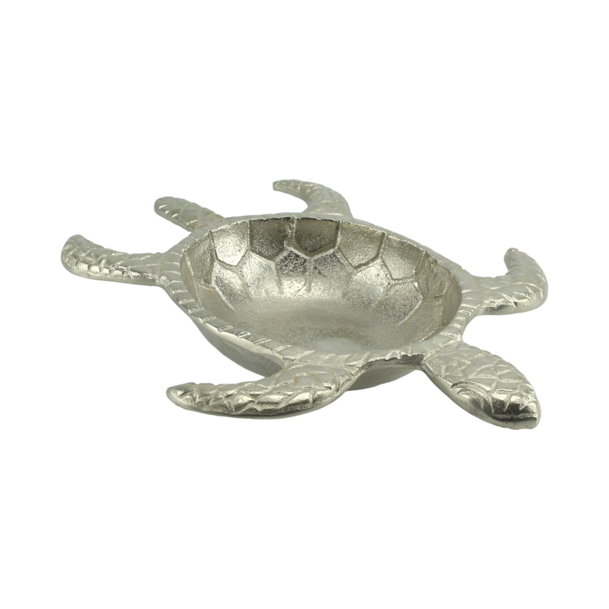 Handcrafted Silver Turtle-Shaped Decorative Bowl: Whimsical Tabletop Accent