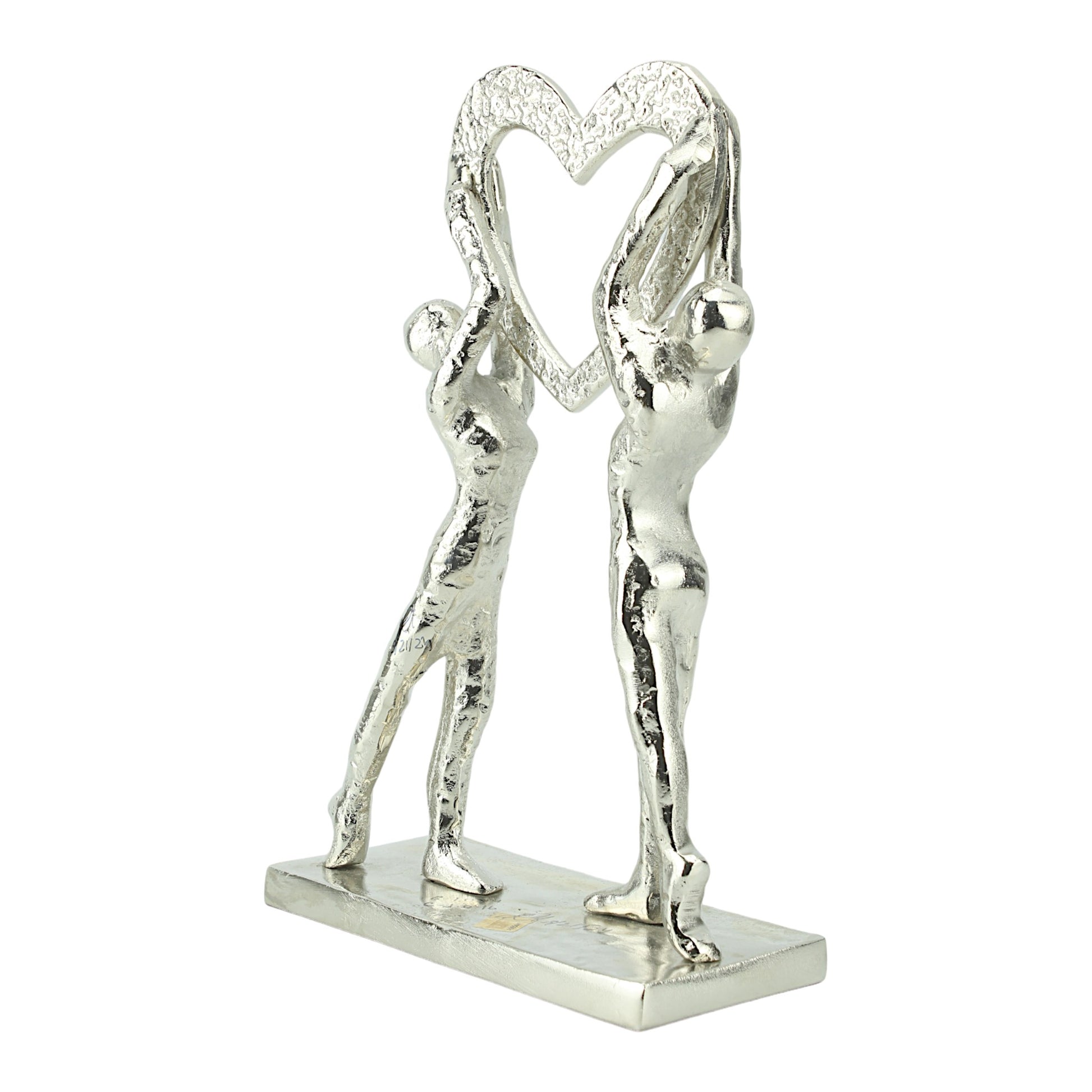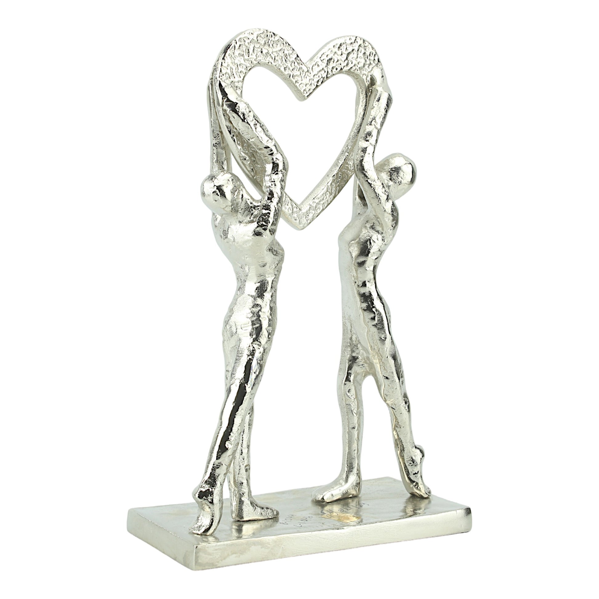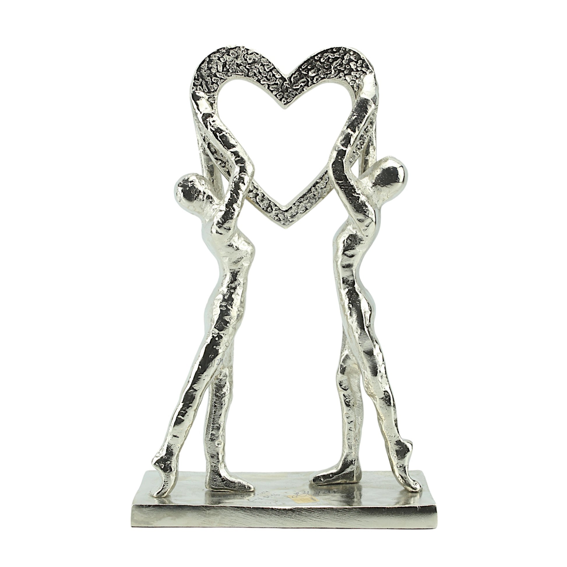 Silver Serenade: Handcrafted Aluminium Couple Holding Heart Sculpture