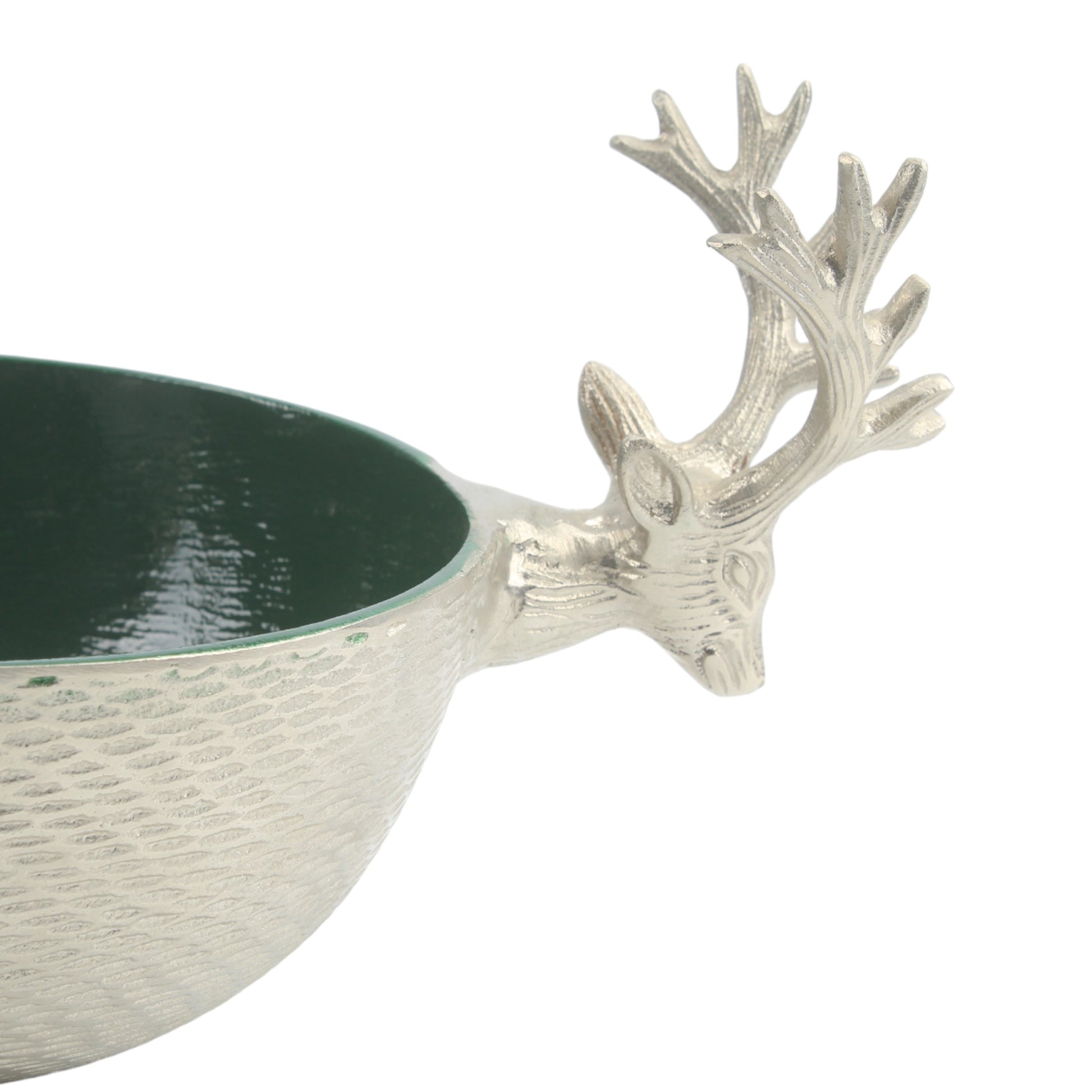 Silver Stag Head Handcrafted Aluminium Serving Bowl: Rustic Charm for Your Table