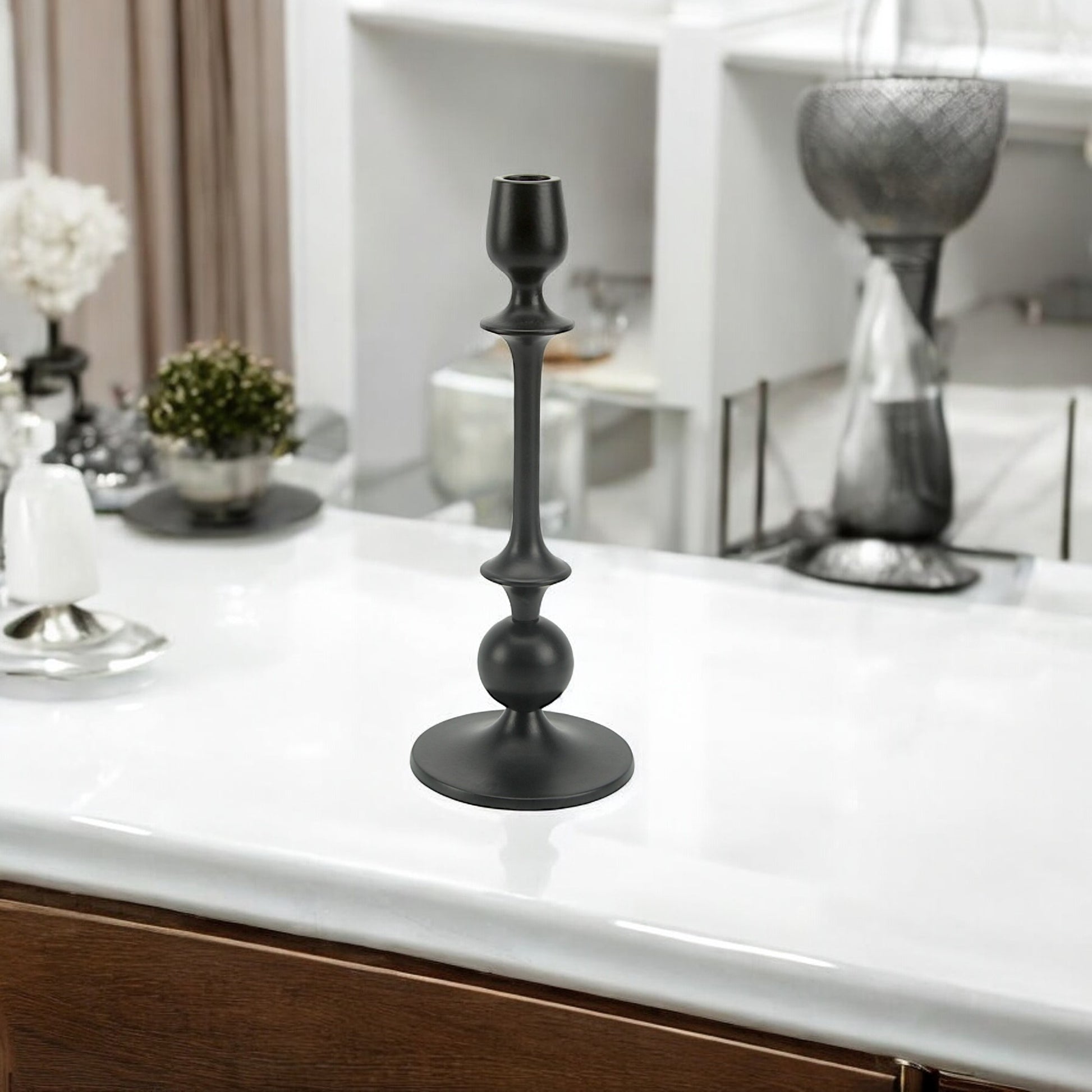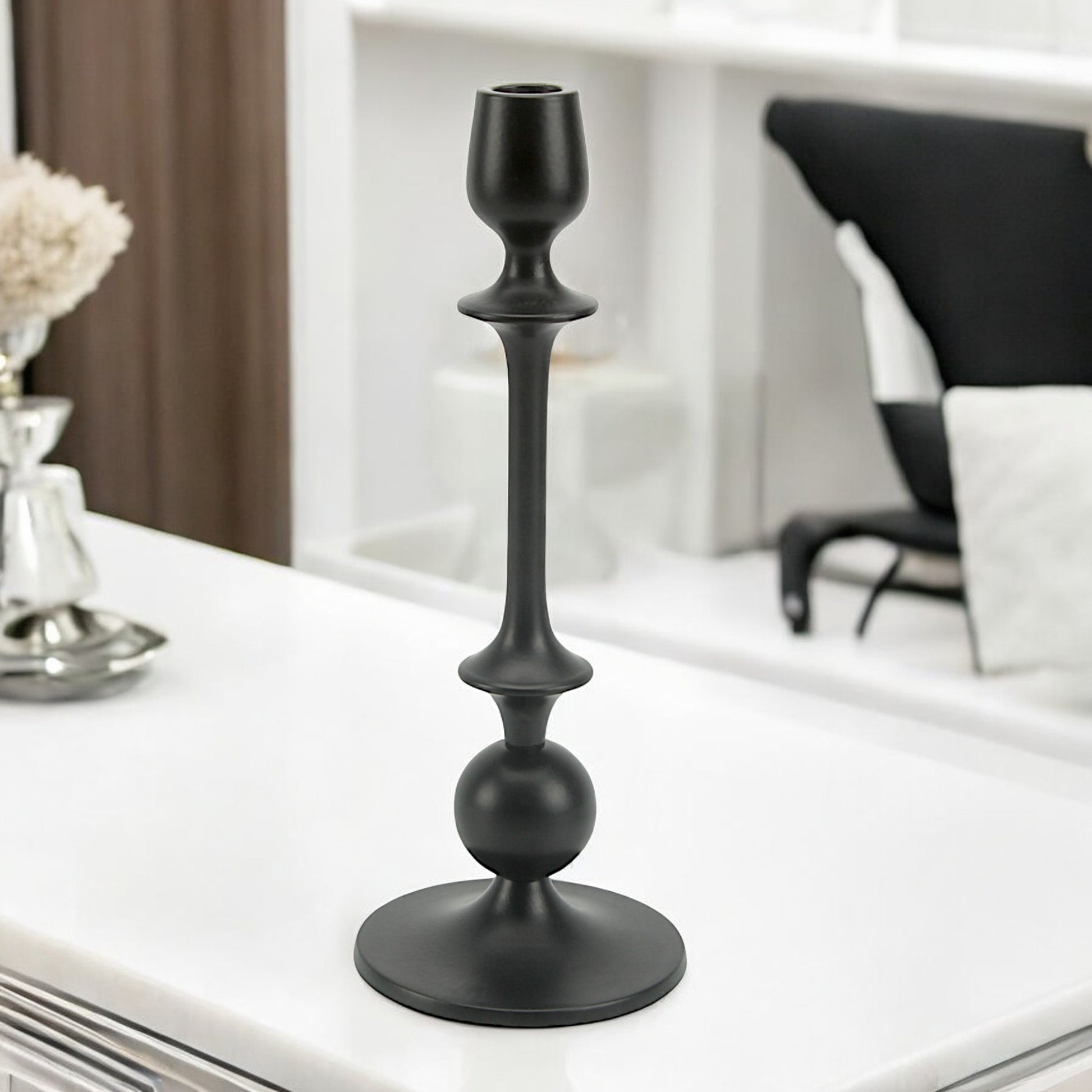 Sleek Noir: Handcrafted Black Aluminum Large Candle Holder | Modern Home Decor